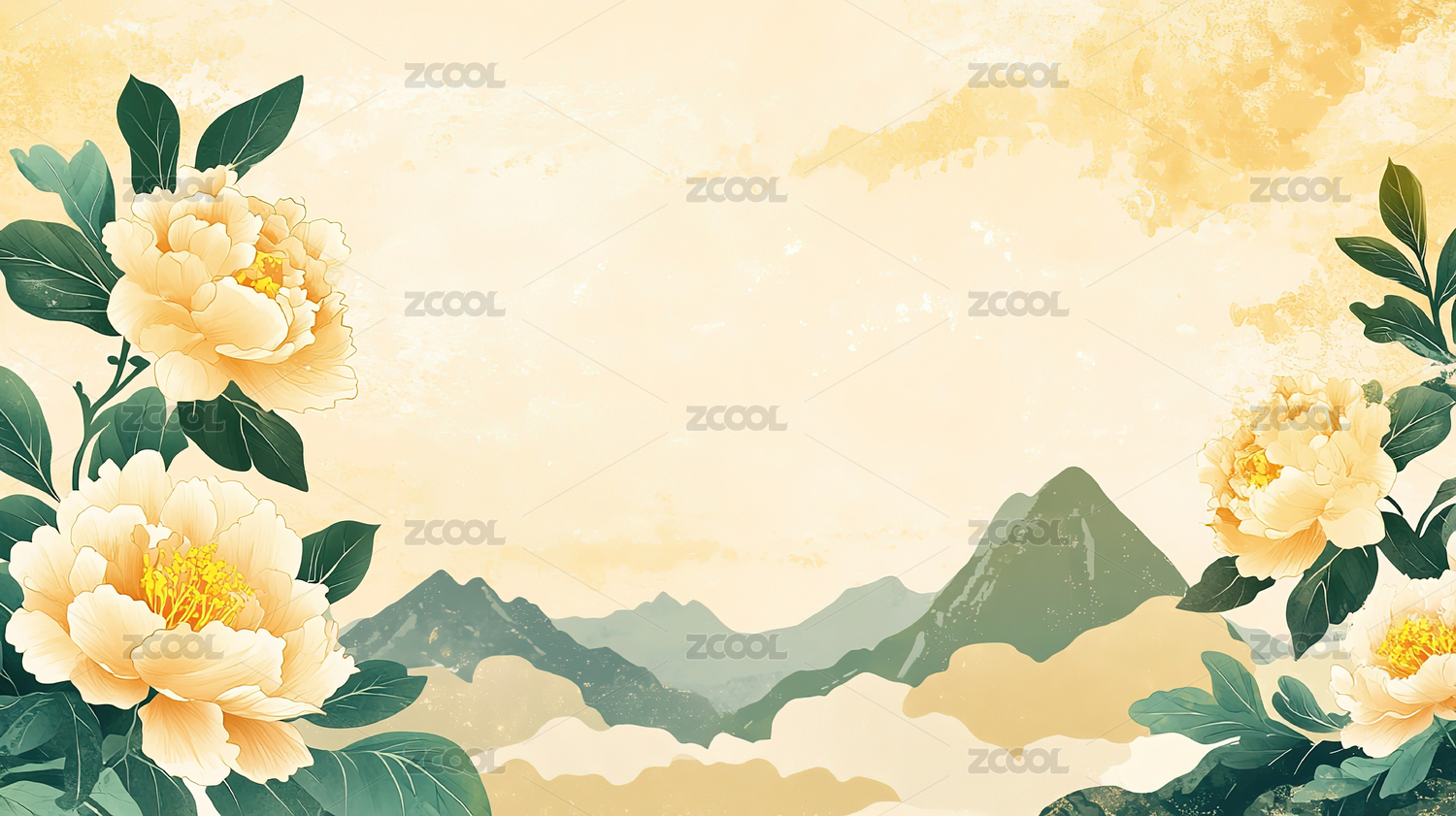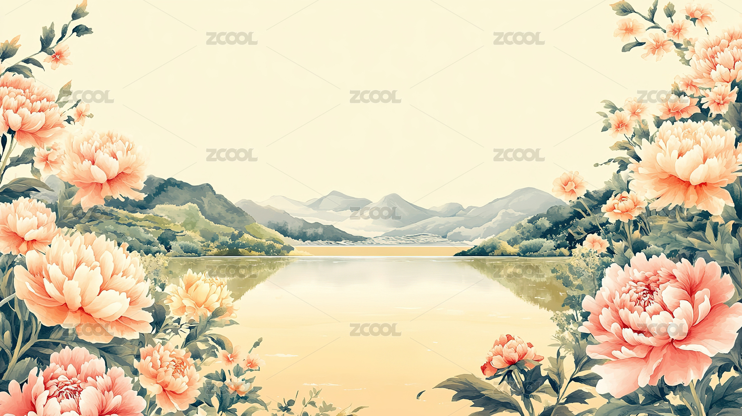 山峦,自然,清新,花朵,淡雅,优雅,意境,景色,中国画,水墨画