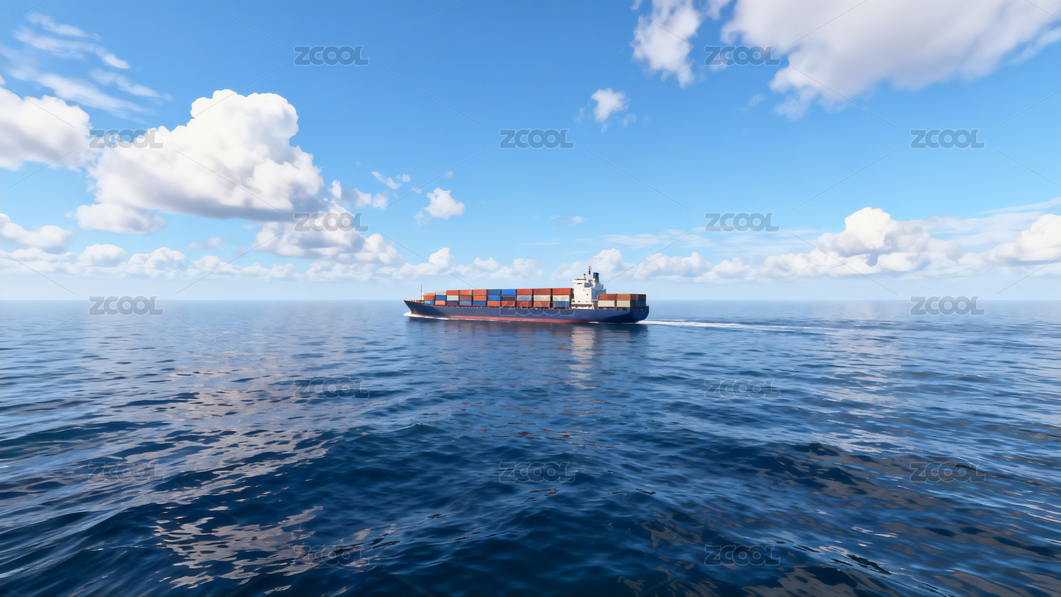 装载集装箱的轮船行驶在大海中