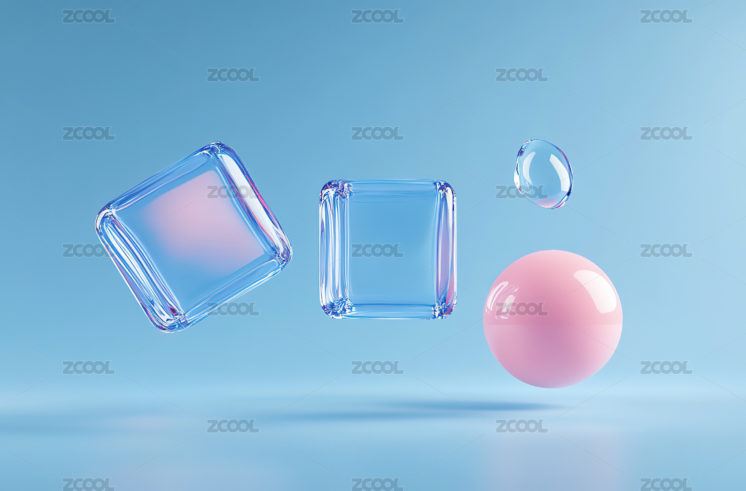 明亮透明玻璃几何体3D渲染