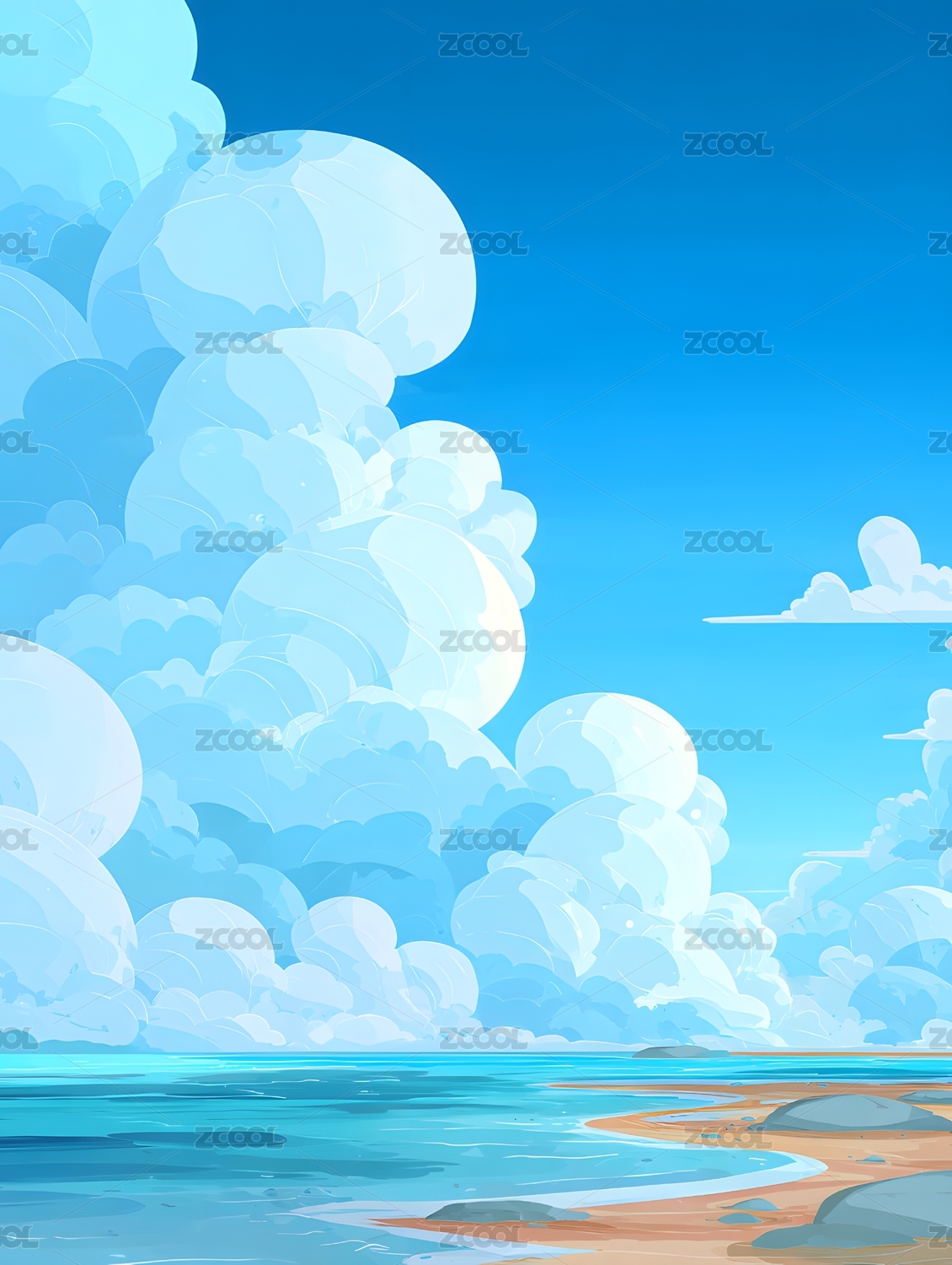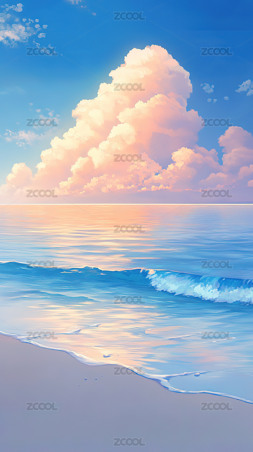 蓝色,温暖,植物,插画,风景,美好,静谧,宁静,清新,简约