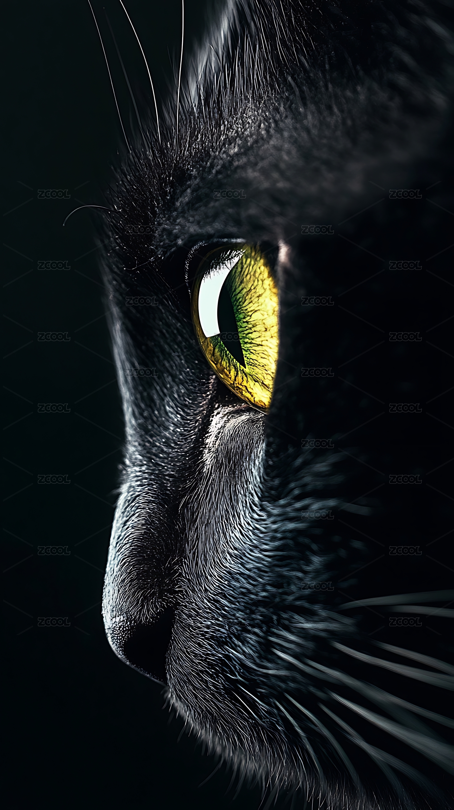 猫咪,侧脸,眼睛,胡须,毛发,光影,对比,细腻,清晰,生动