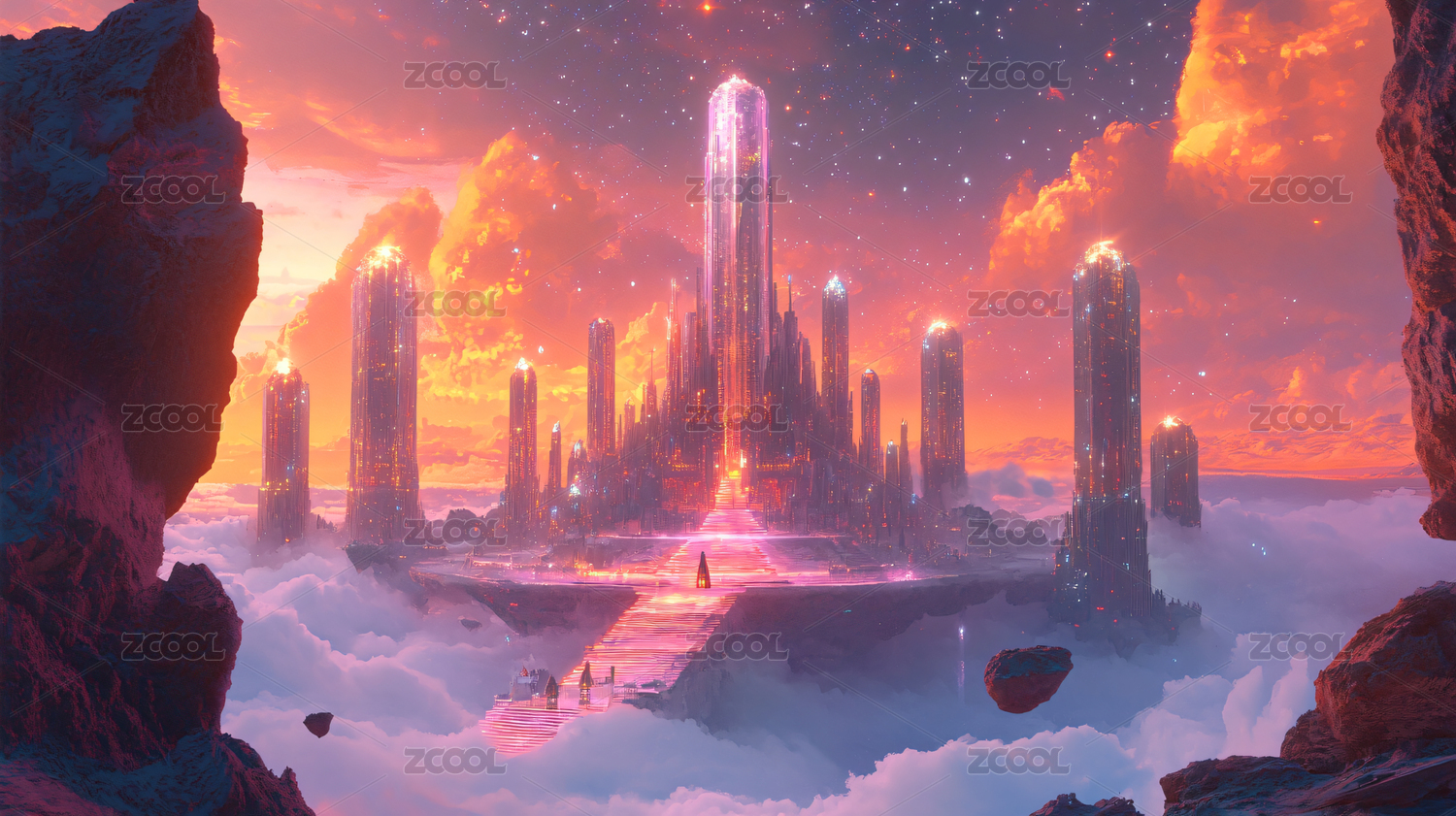 海岸,岩石,日落,云彩,水面,反射,光线,天空,奇特,幻境