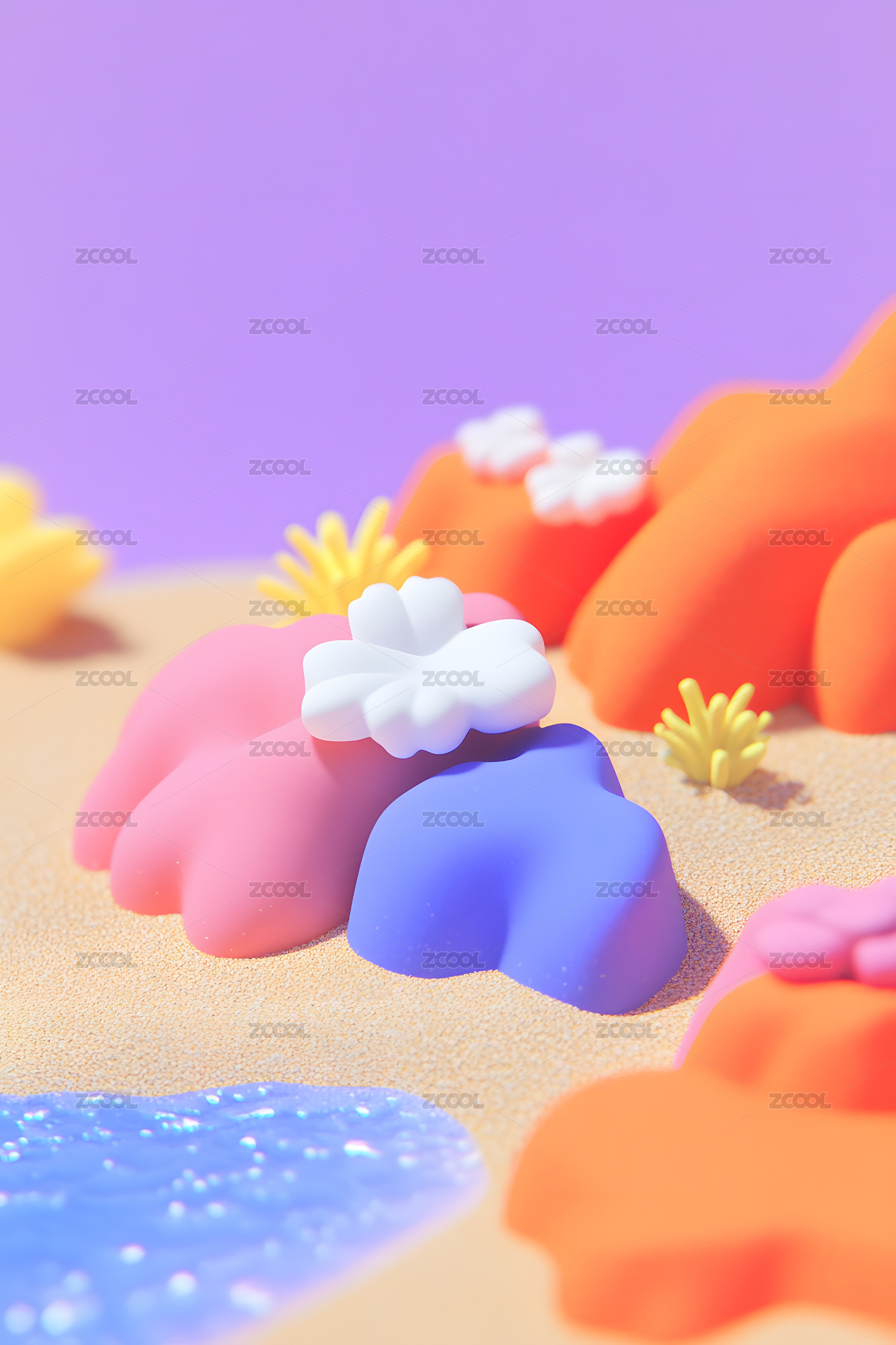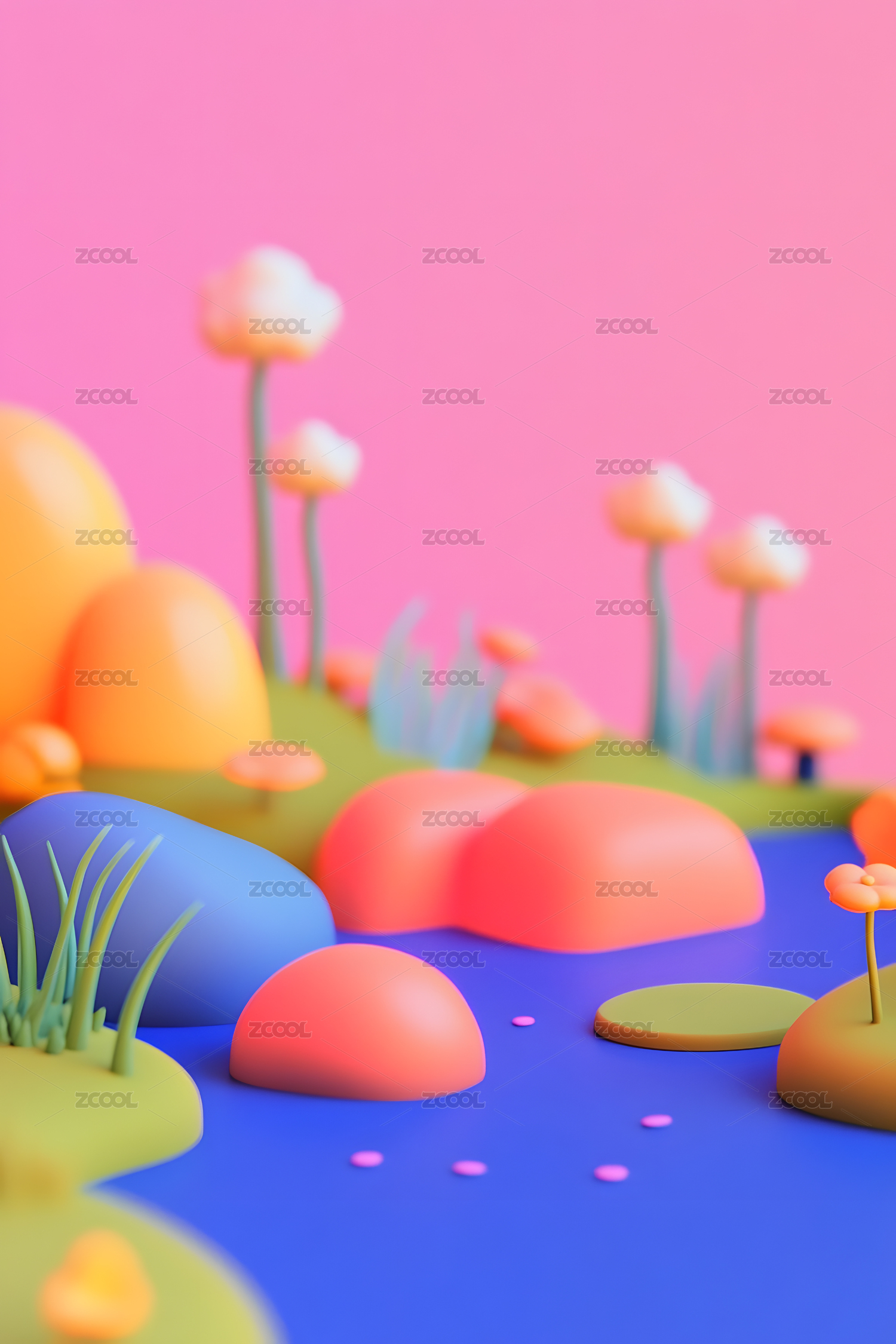 彩色,卡通,3d,立体,可爱,温柔,柔和,风景,山峰,景观