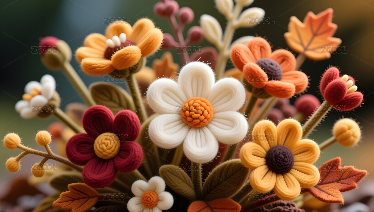 花朵,绿叶,质感,色彩,自然,蓝天,白云,生机,柔美,毛线