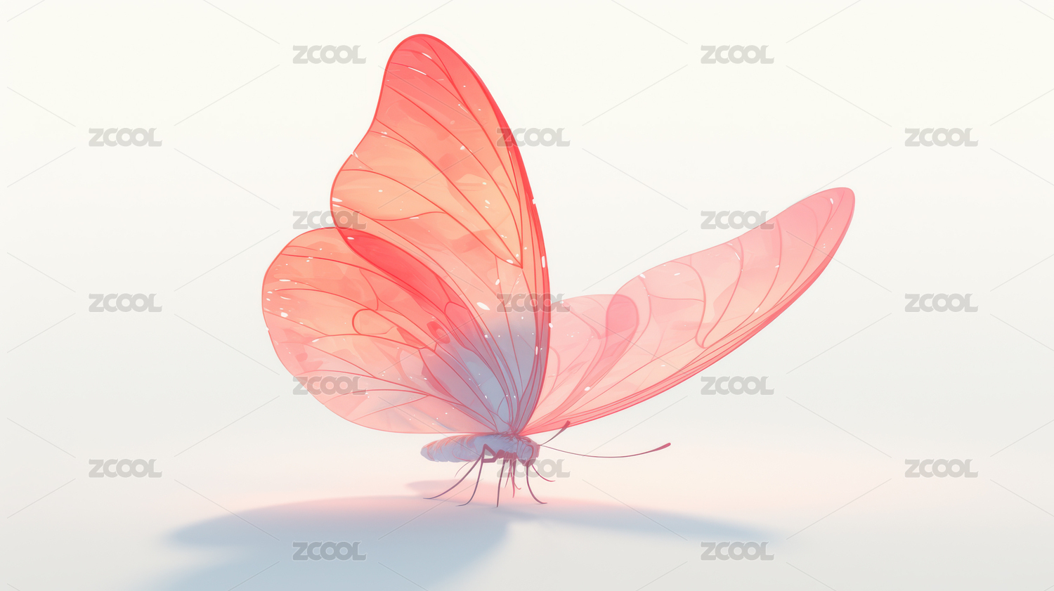 粉橙渐变蝴蝶与细腻纹理的简洁艺术画面