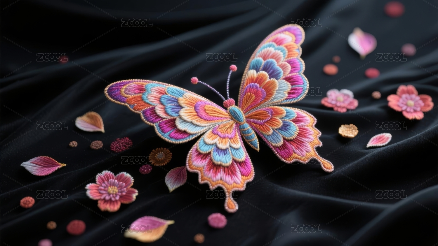 蝴蝶,花朵,叶子,装饰,图案,细节,纹理,布料,色彩,紫色