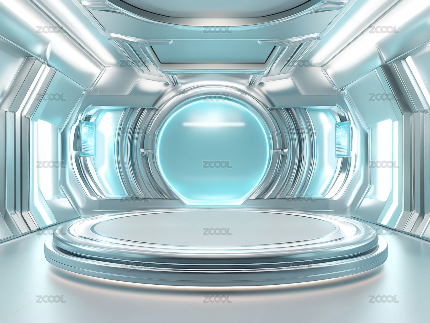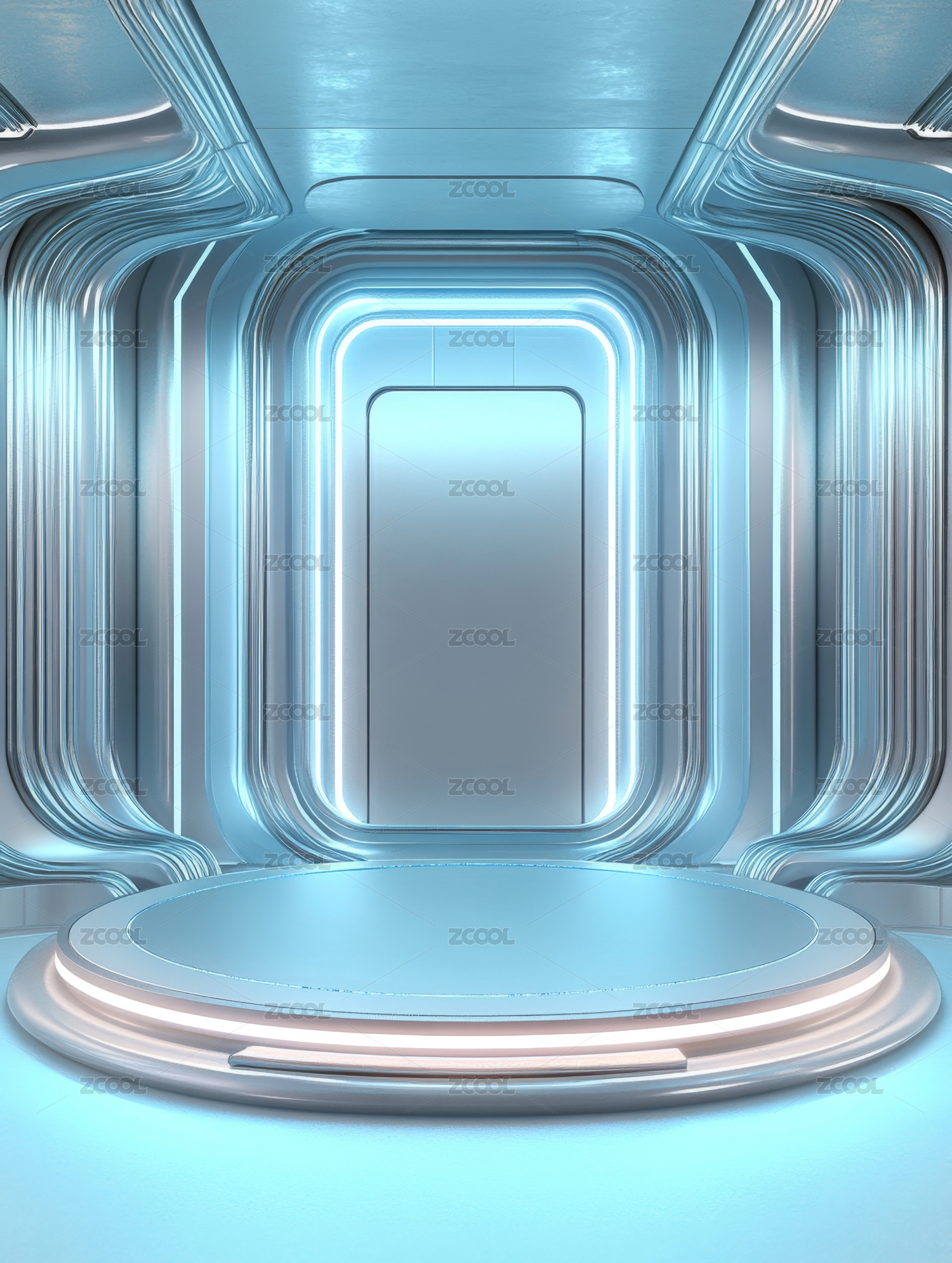 未来,科技,平台,金属,灯光,现代,展示,空间