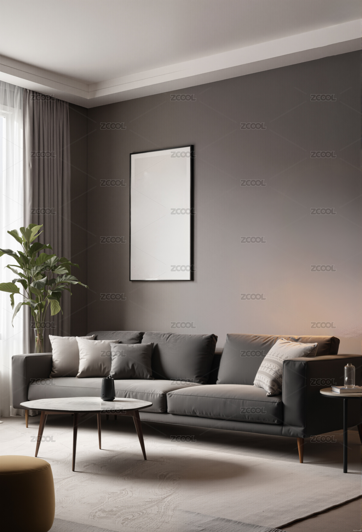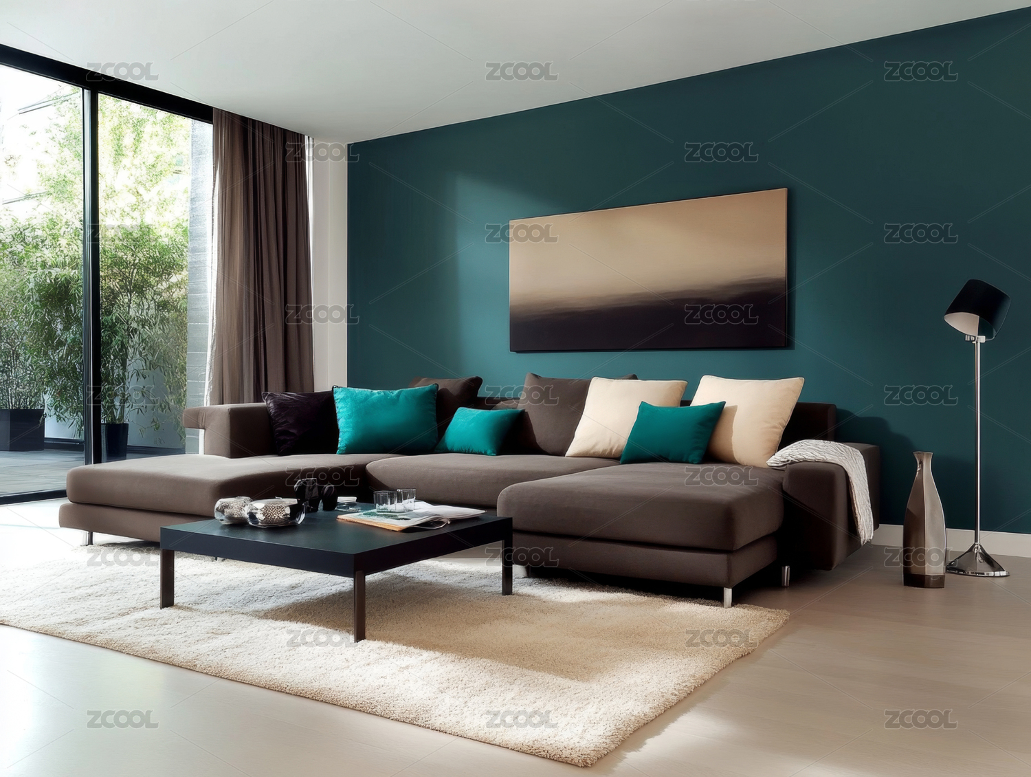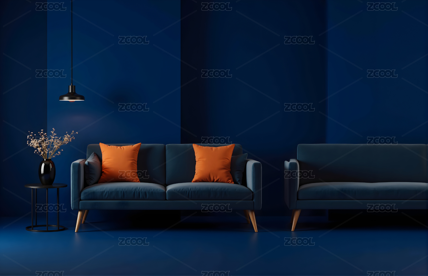 沙发,抱枕,装饰画,蓝色,墙壁,落地灯,地毯,植物,室内,设计