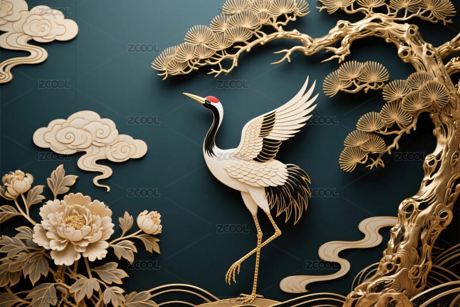 传统纸艺仙鹤插画