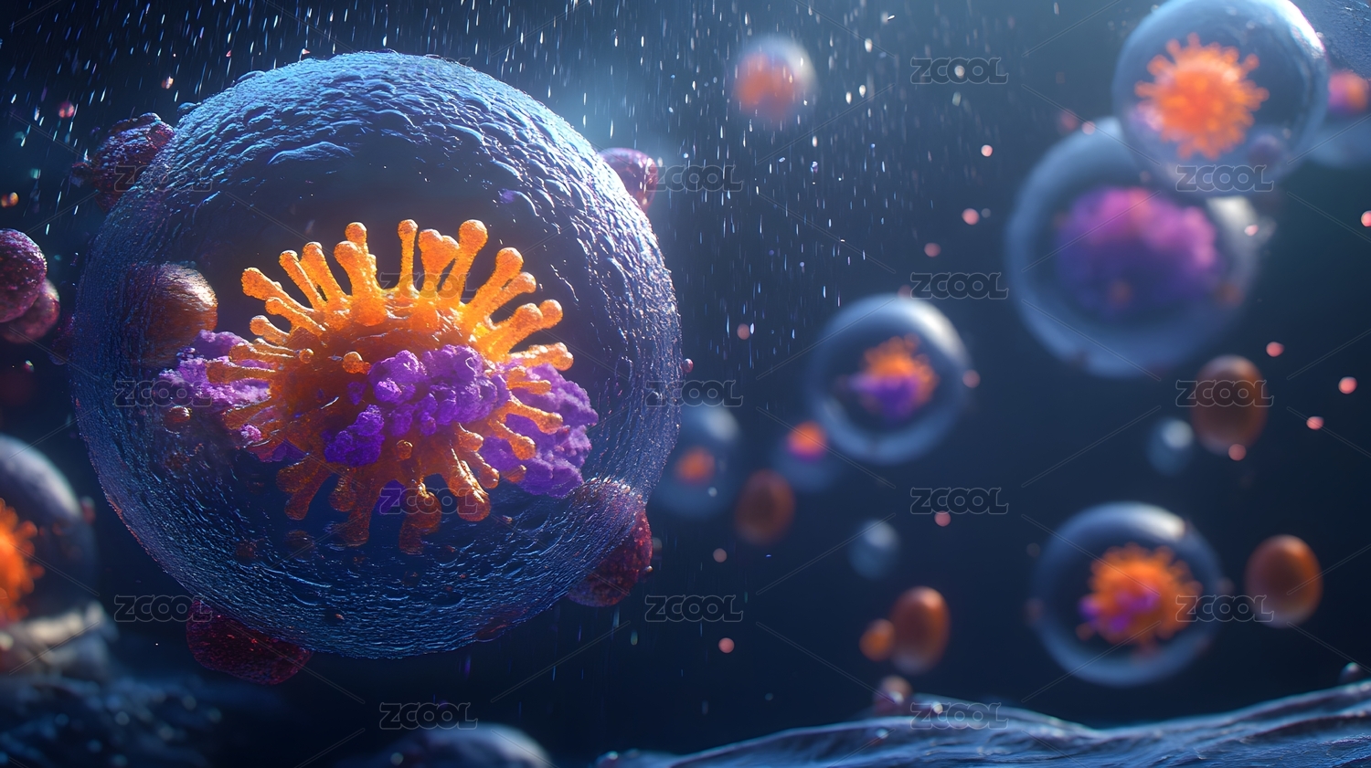 三维渲染人体细胞或胚胎干细胞显微镜背景