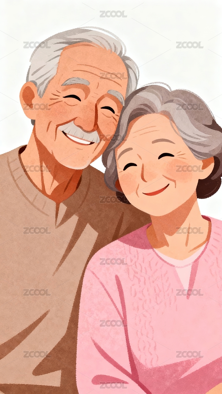 卡通,温馨,白发,家庭,老年夫妇,插画,幸福,眼镜,微笑,拥抱
