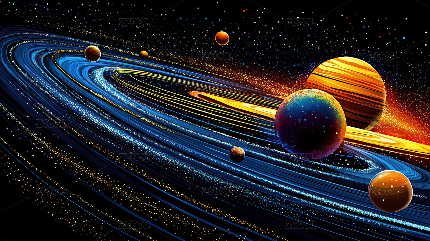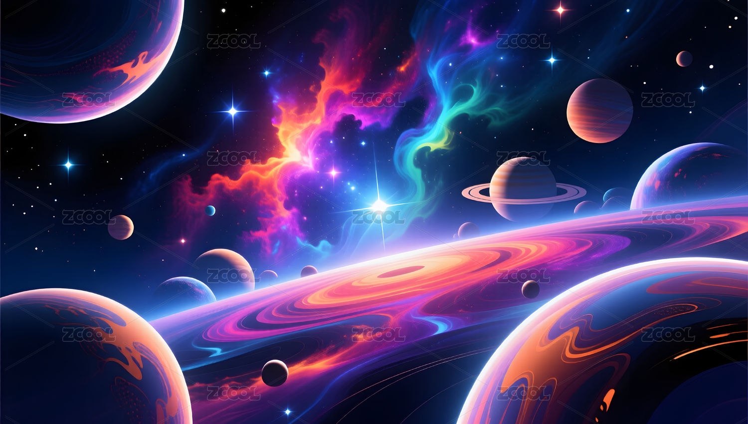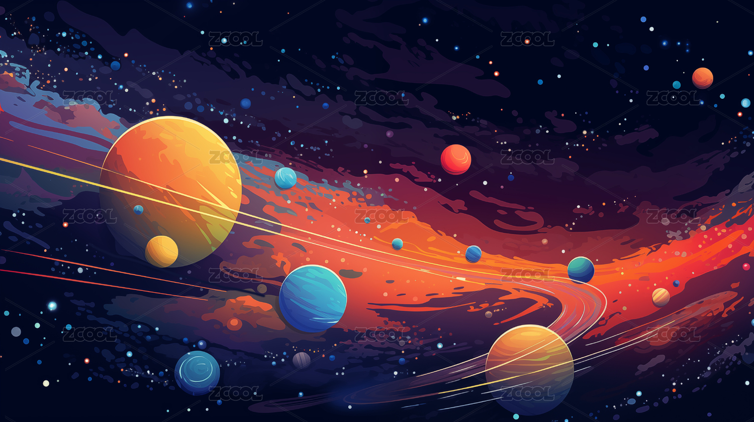 多彩宇宙的奇妙景象抽象概念插画