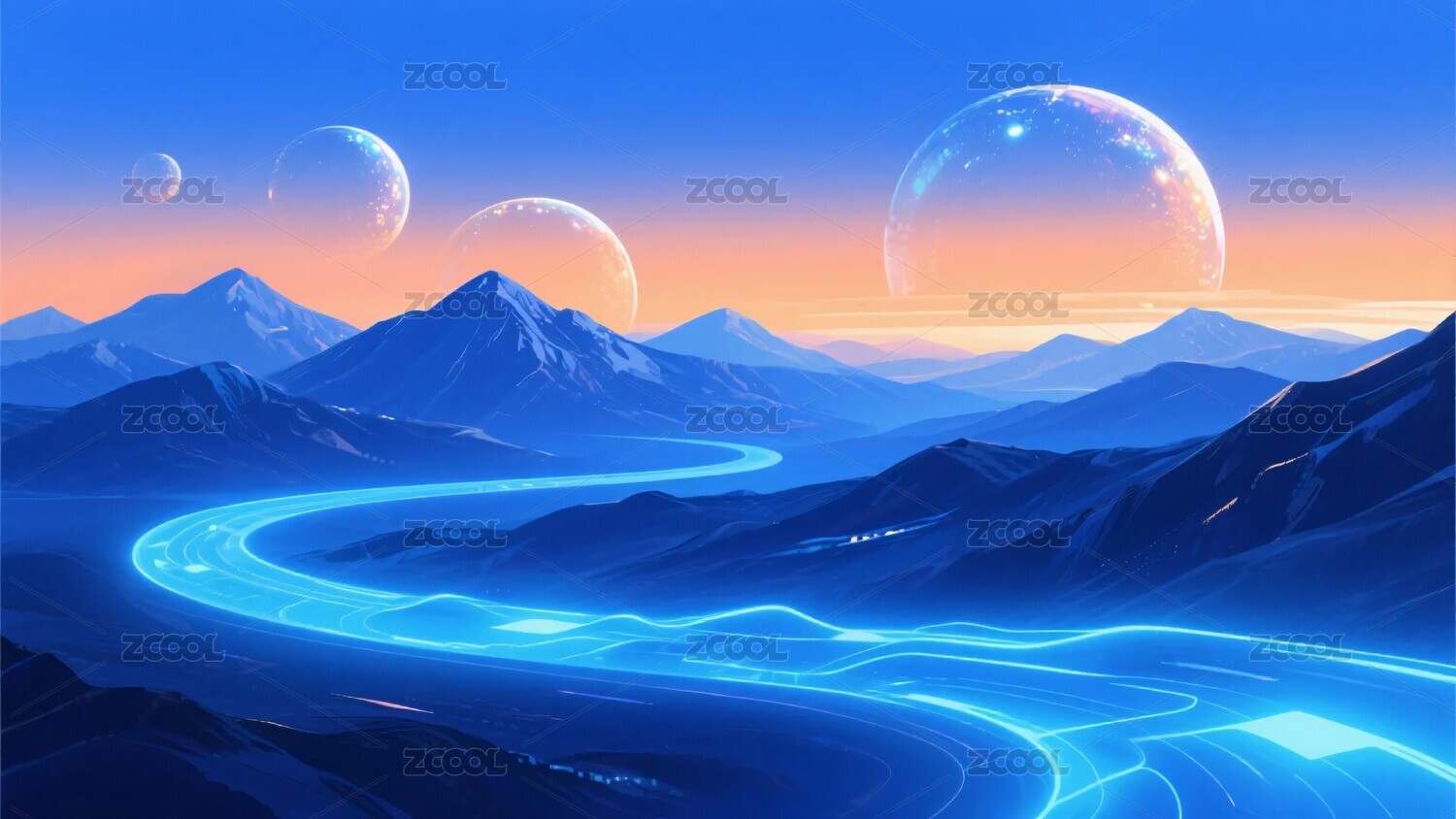 梦幻星球山川河流插画
