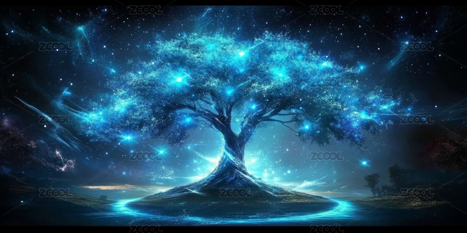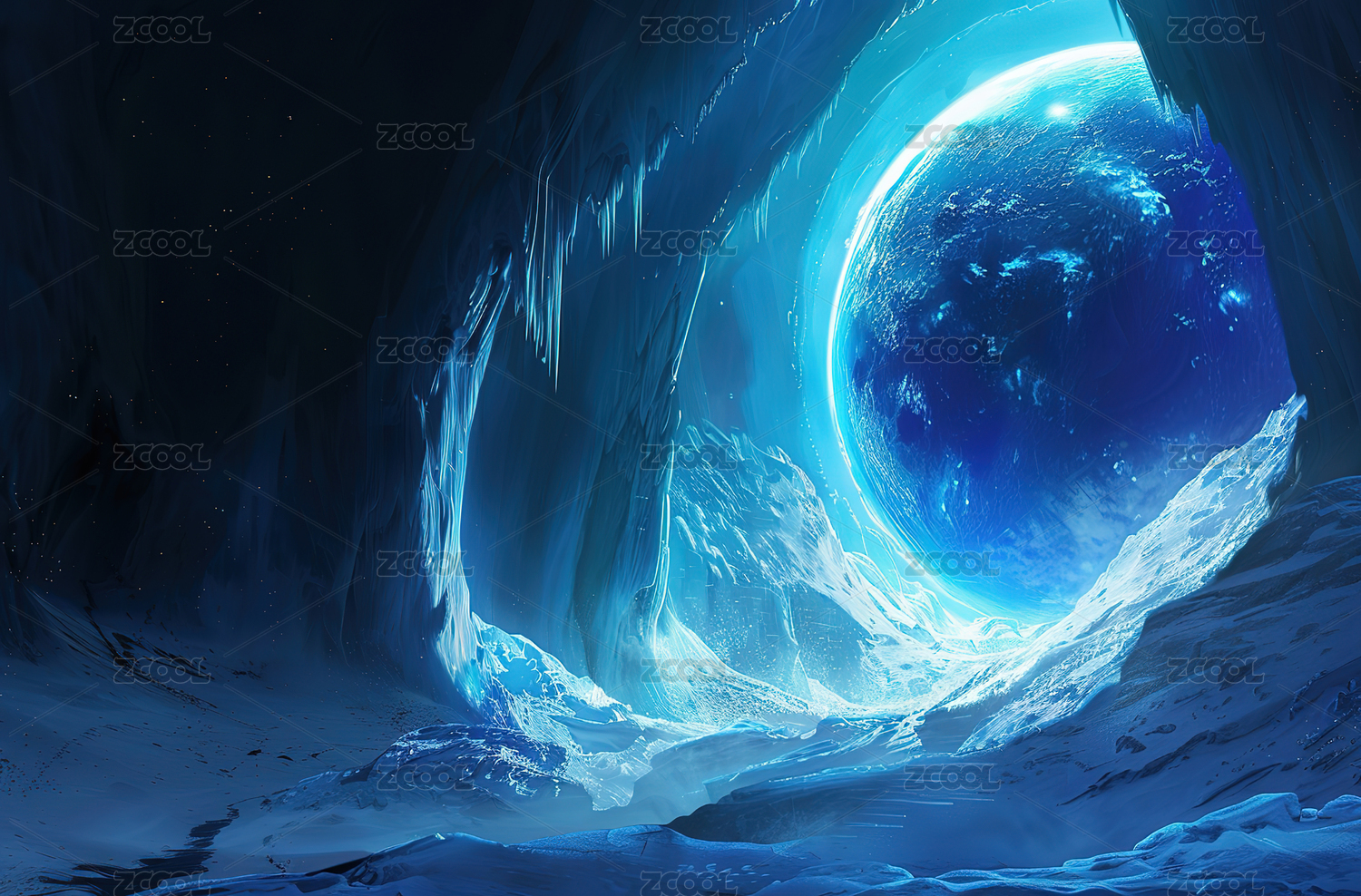 森林, 神秘, 场景, 环境, 奇幻, 艺术, 冰块, 魔法, 蓝色, 光芒
