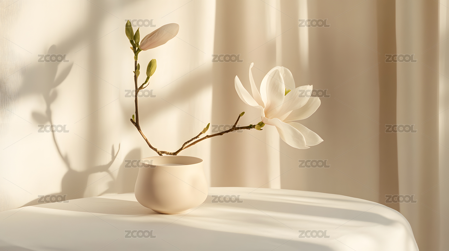 简约,讲台,白色,大花,白花,浅灰,阳光,阴影,现代感,展示