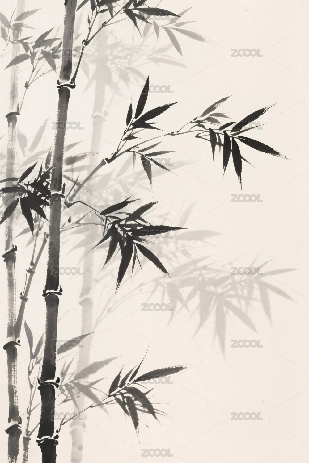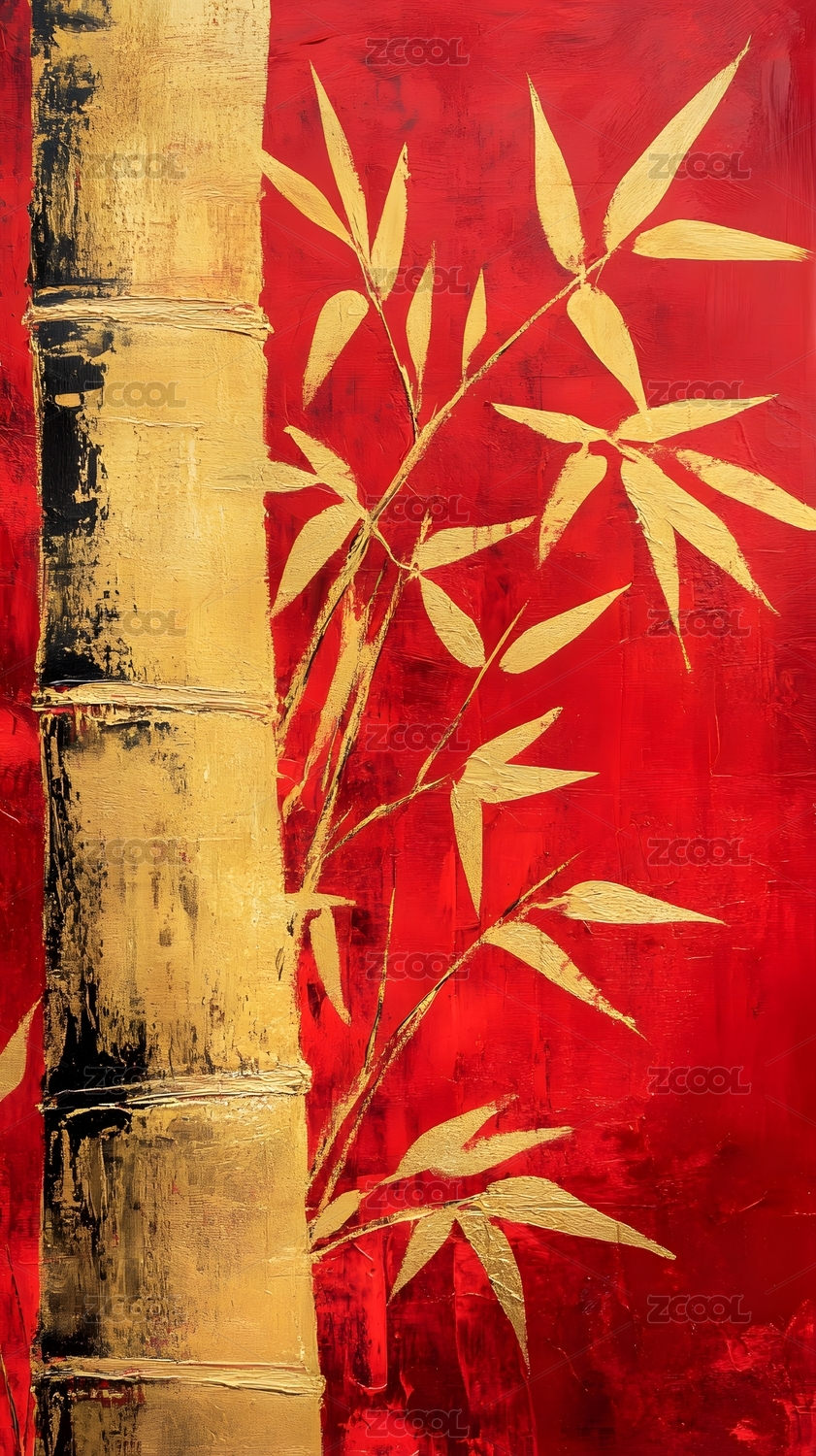 艺术, 水彩画, 植物, 装饰, 绘画, 中国风, 简约, 纹理,竹子, 金色