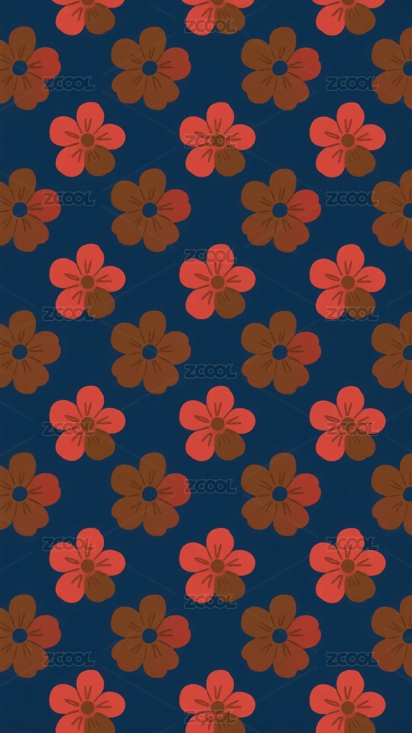 深蓝色背景上的粉色花朵图案