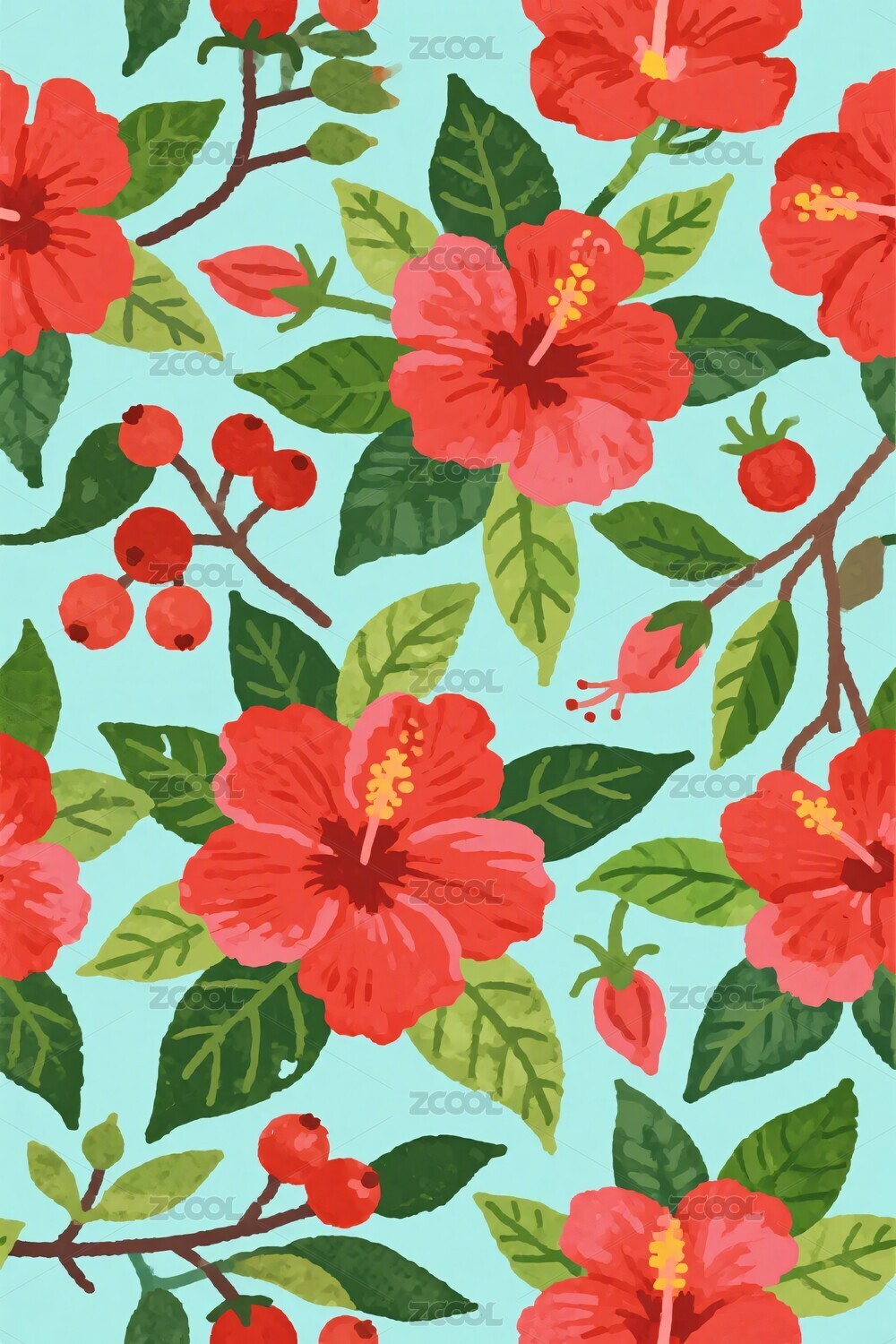 红色花卉插画图案
