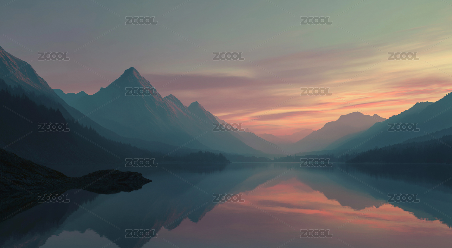 梦幻, 天空, 云彩, 蓝色, 紫色, 粉色,山脉, 湖泊, 倒影, 日出
