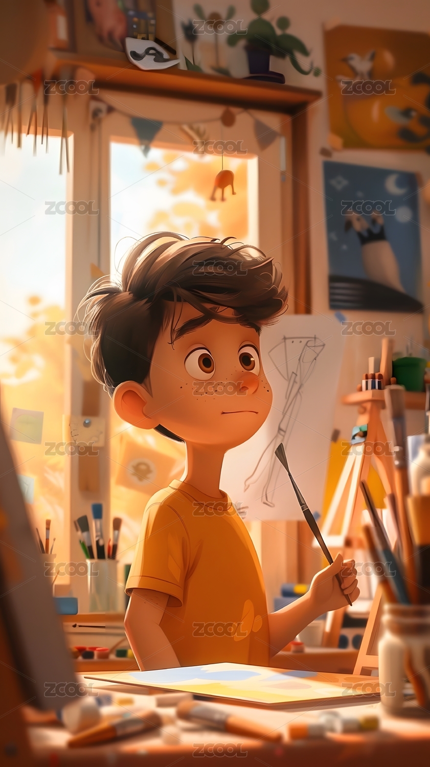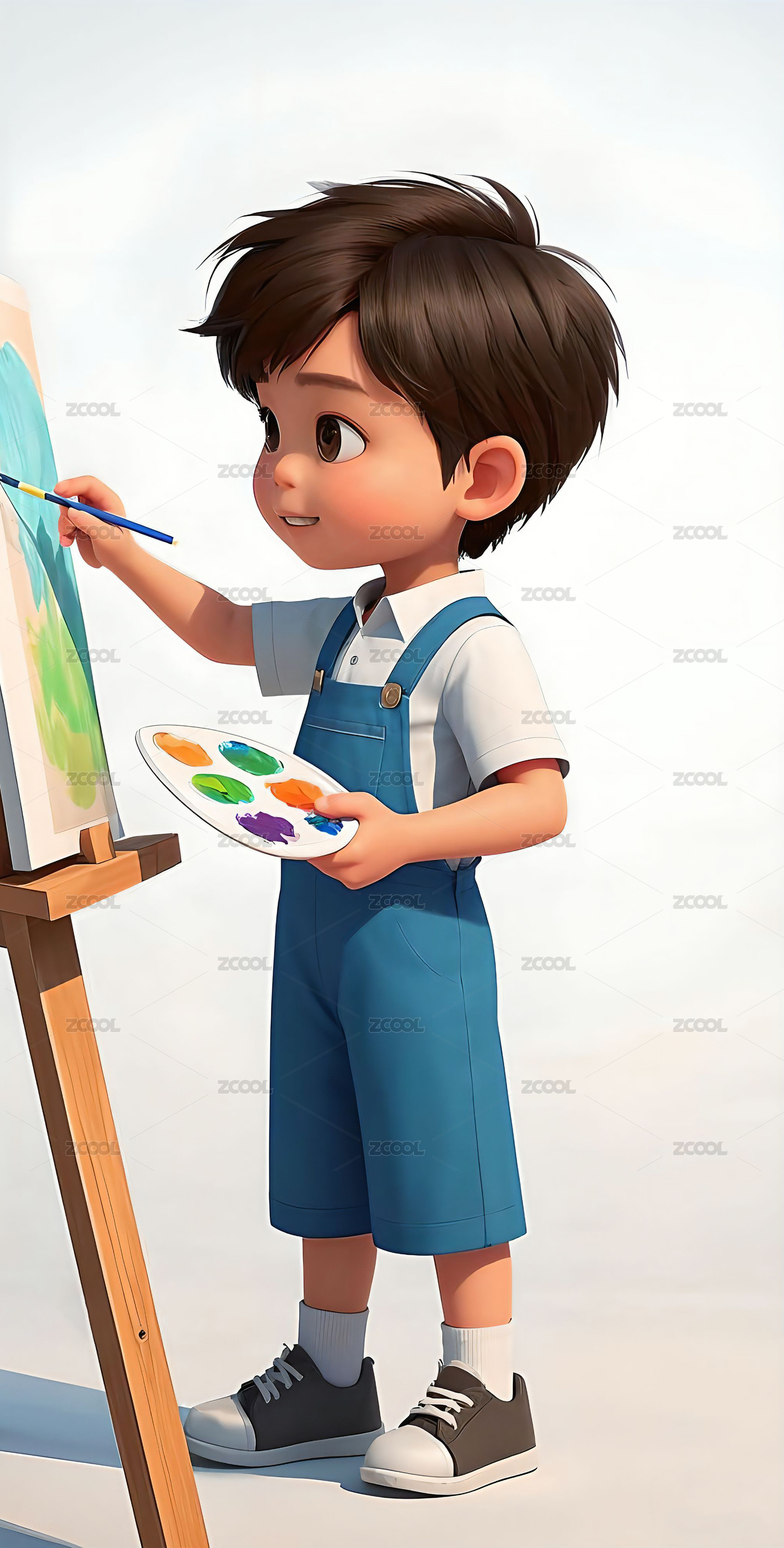 3D,白底,儿童,画画,水彩,画板,画架,彩色,背景,AI
