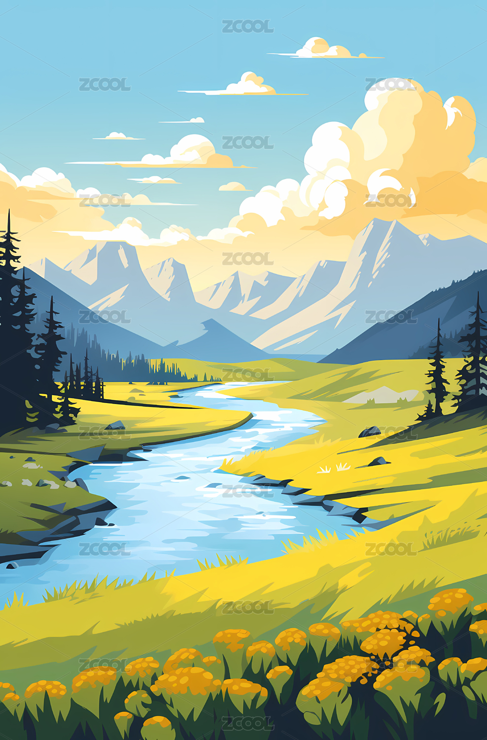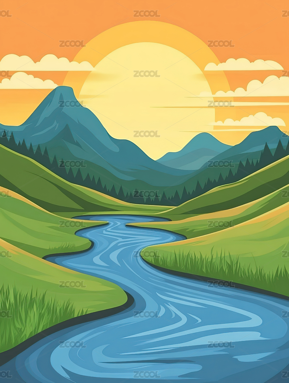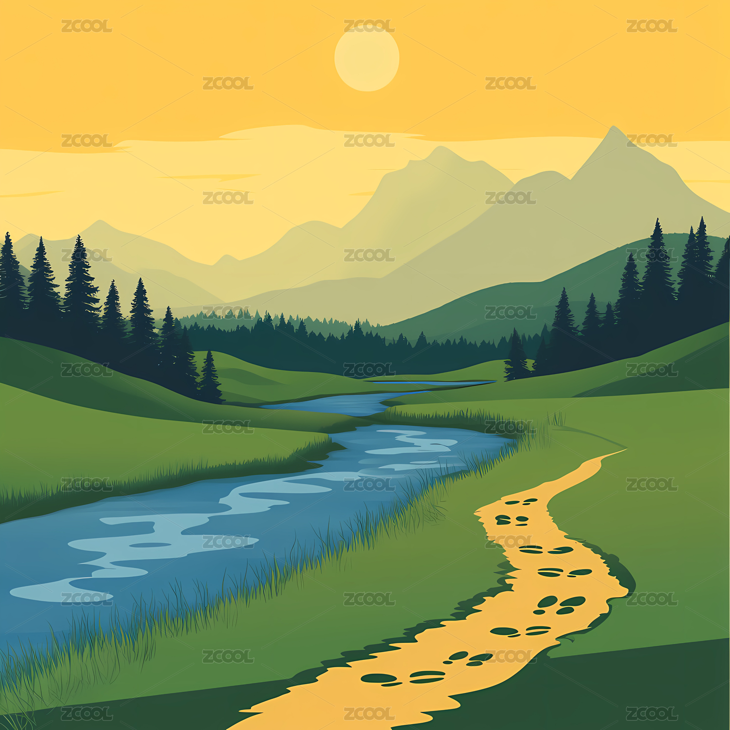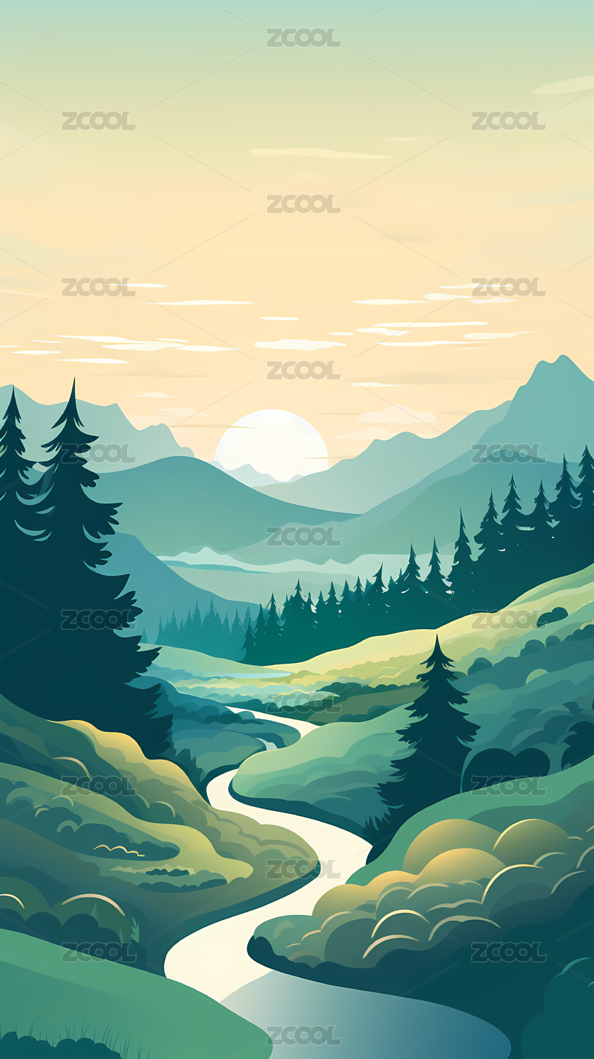 河谷手绘插图背景