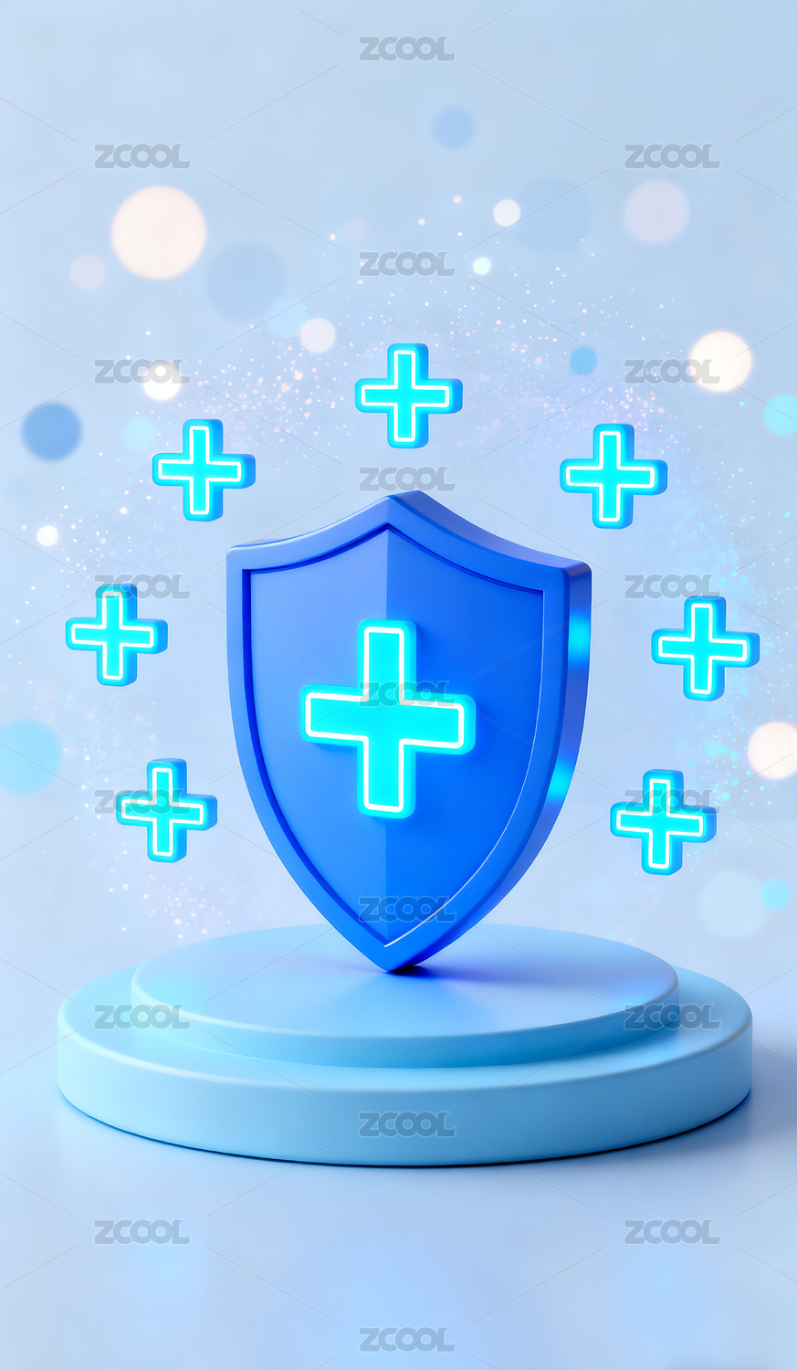 蓝色商务科技3D渲染盾牌图标主视觉背景