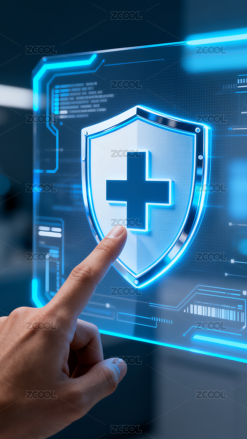 商务科技医疗手上的盾牌数据图案主视觉背景