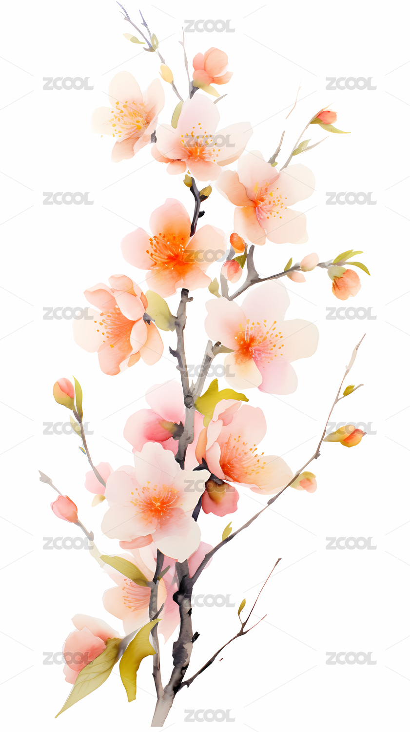 水彩风格花卉之桃花