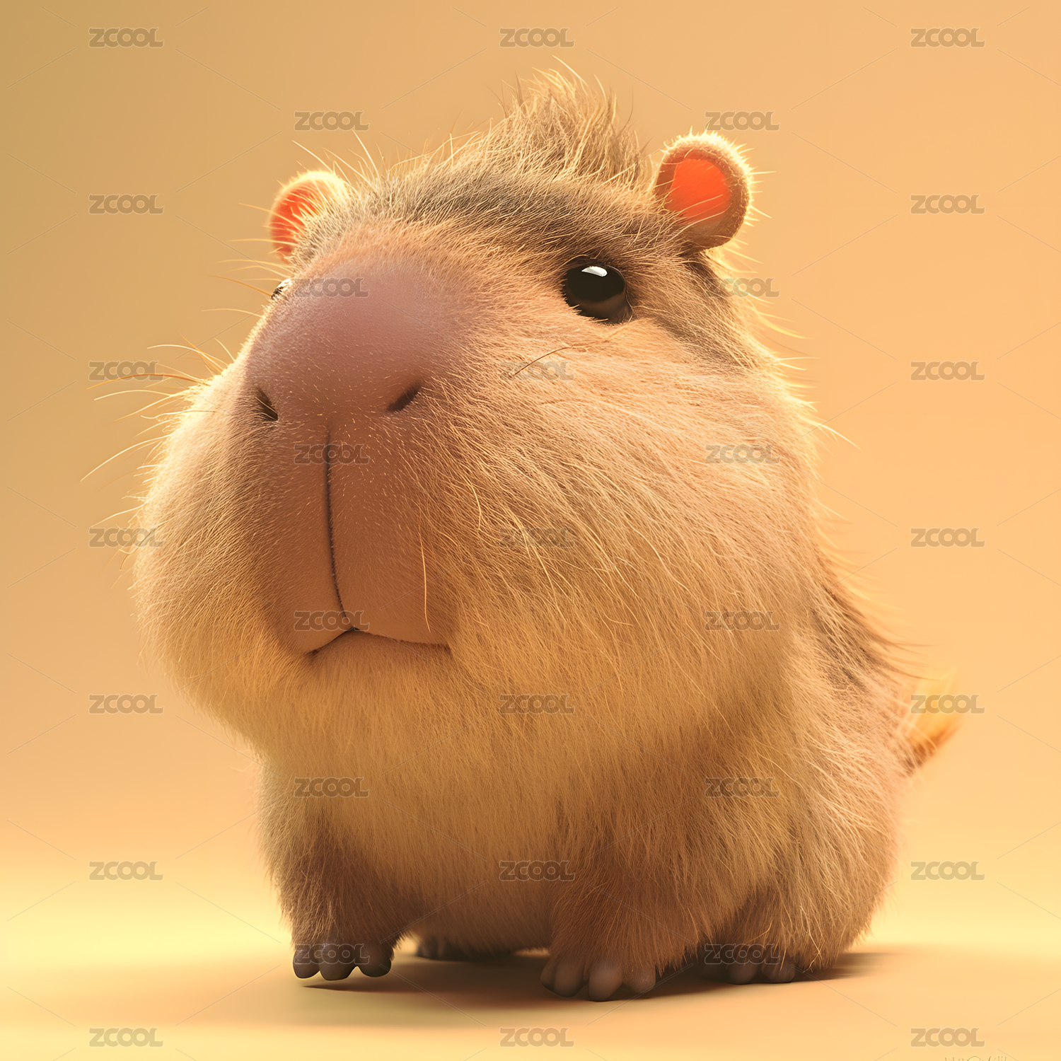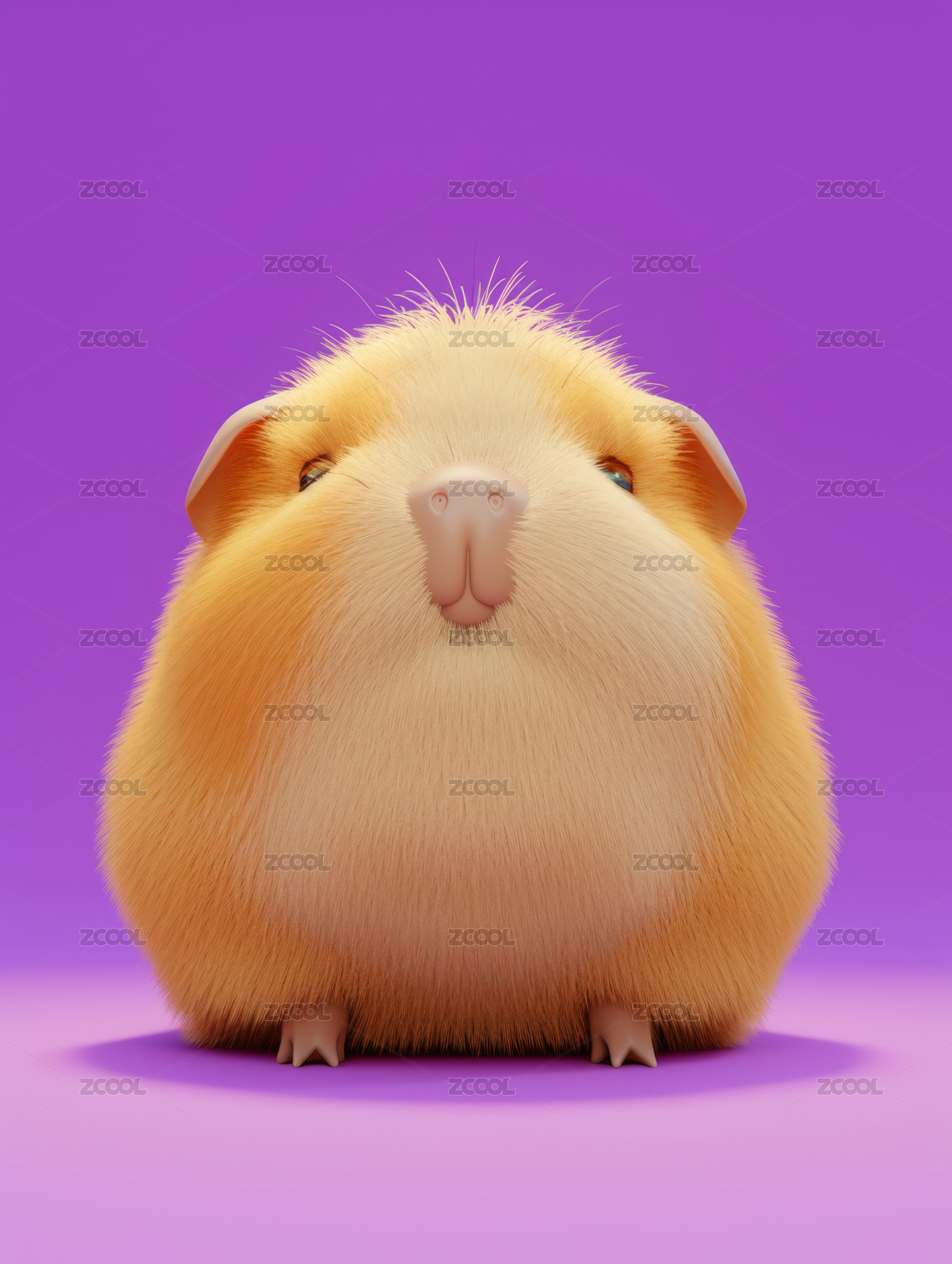豚鼠,卡通,可爱,橙色,背景,毛茸茸,微笑,动物,3D,渲染