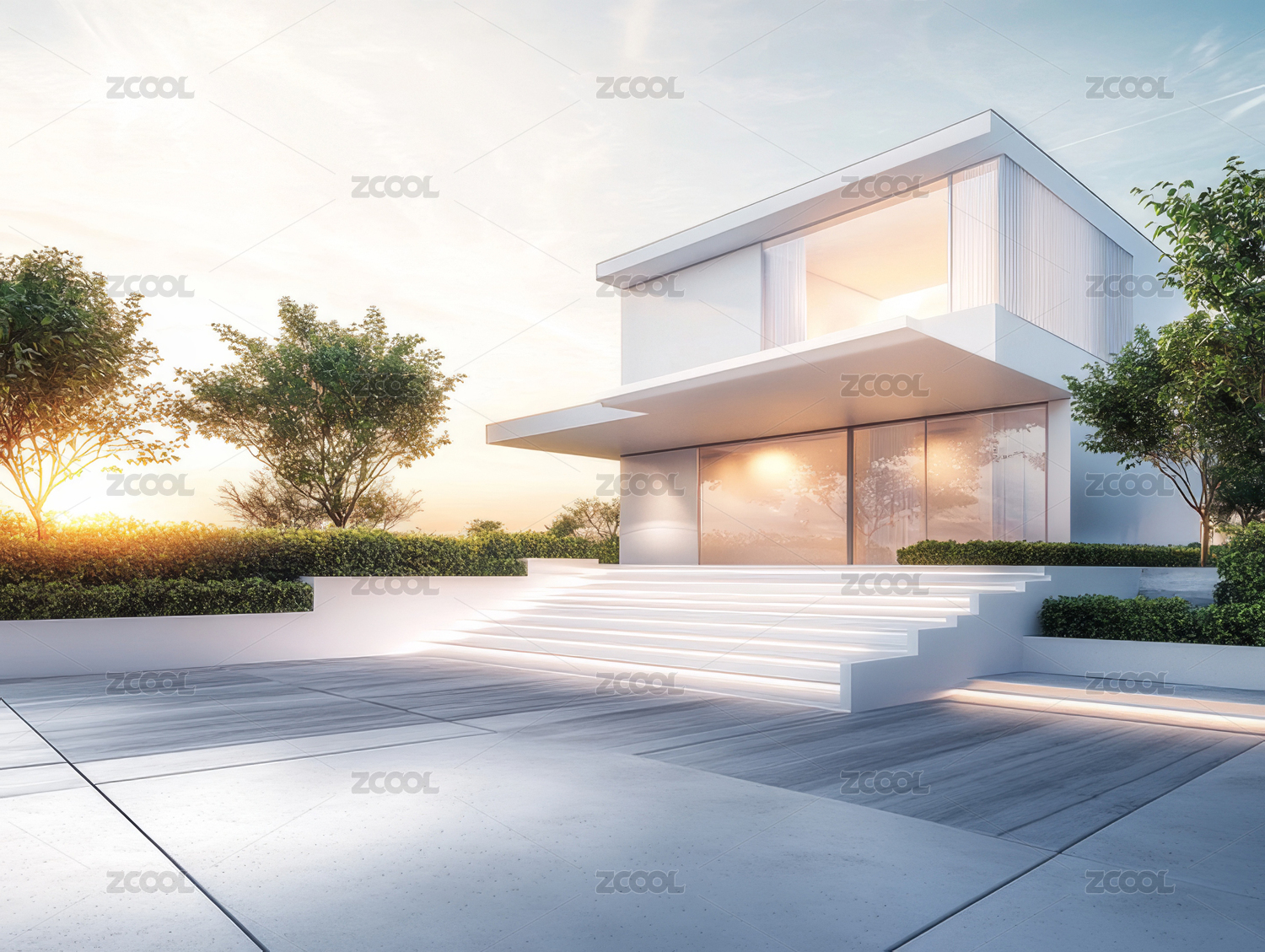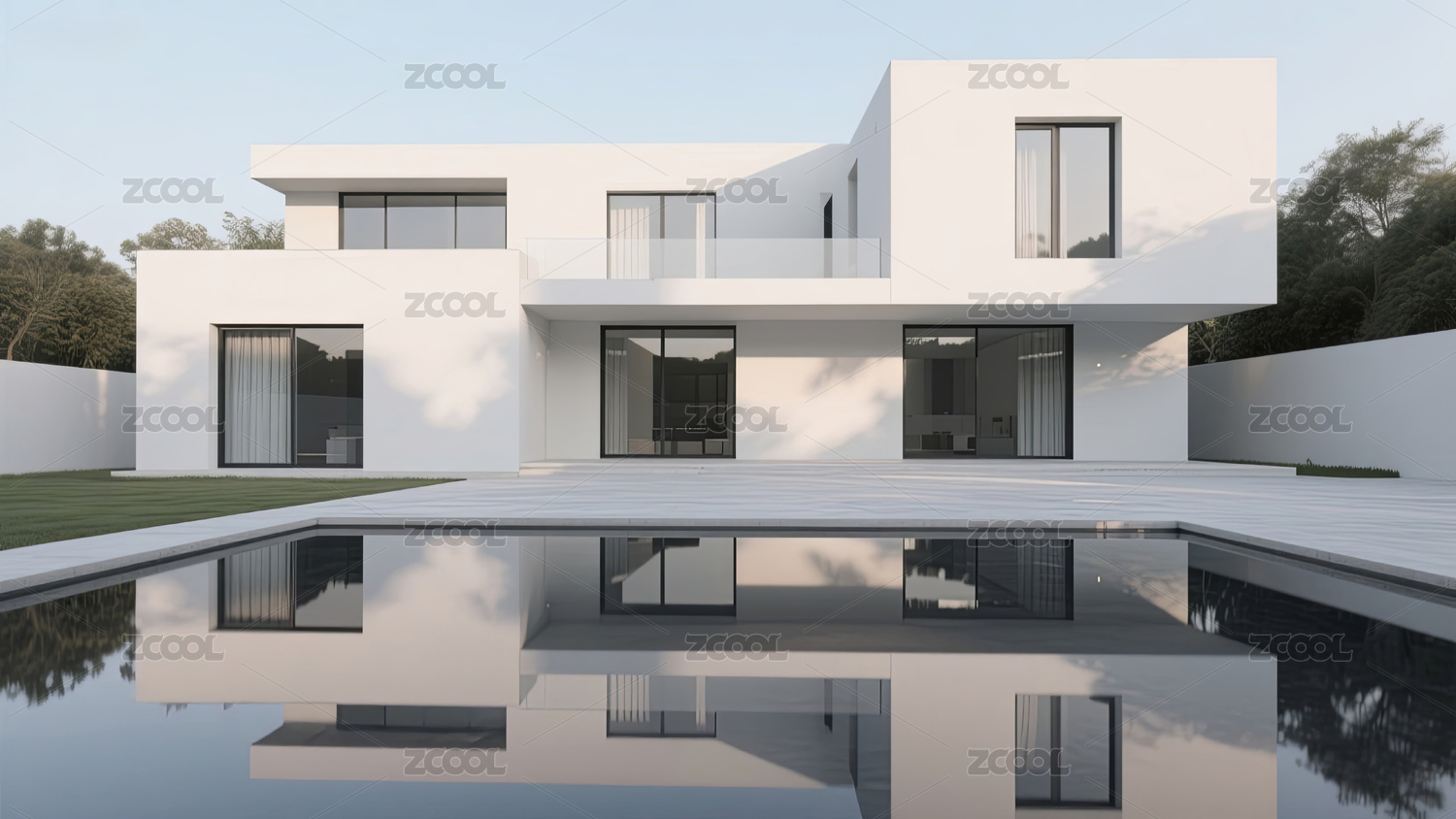 现代,别墅,简约,外观,游泳池,庭院,白色,建筑,设计,户外