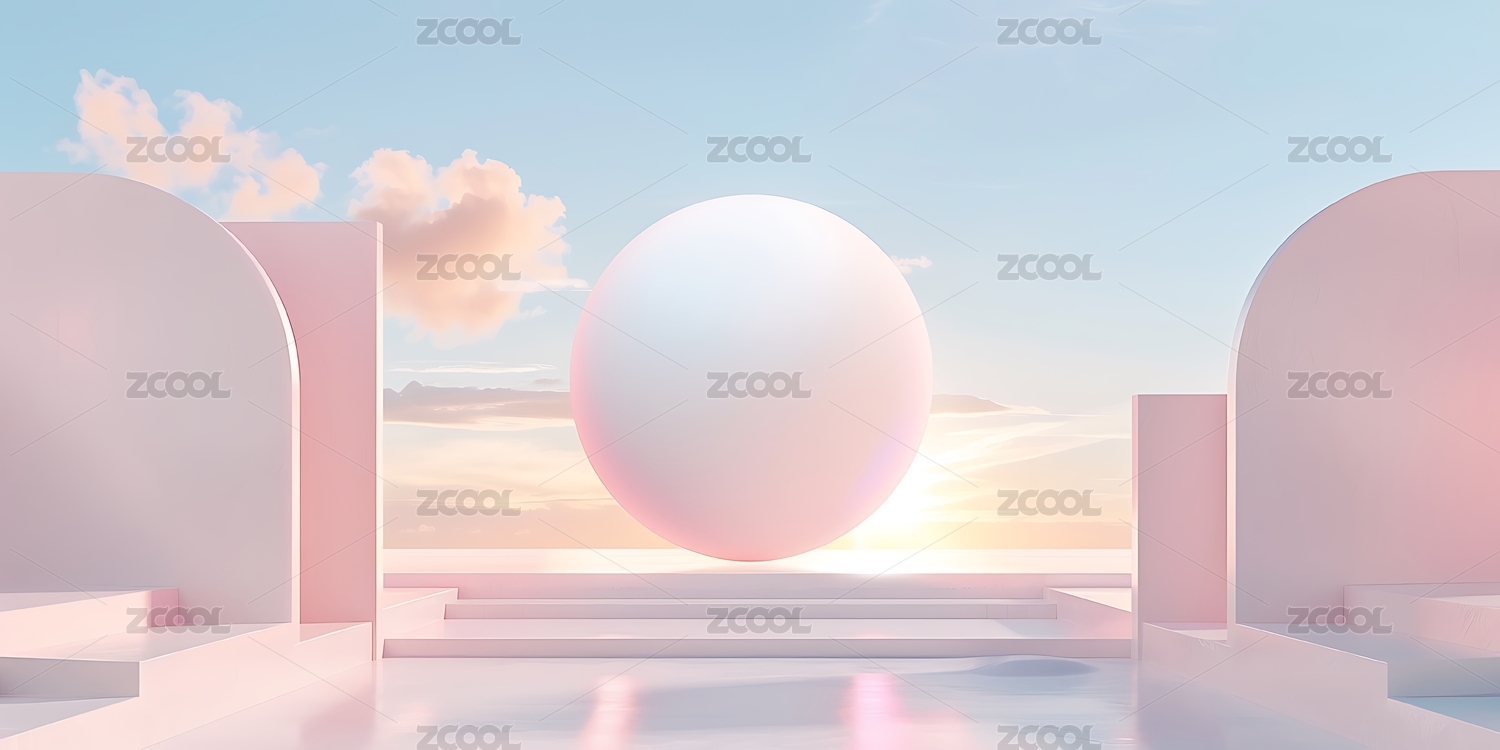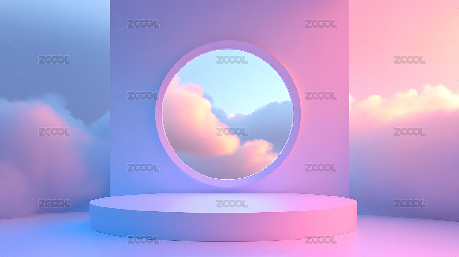 圆形,艺术,设计,现代,展示,背景,几何,形状,云朵,天空