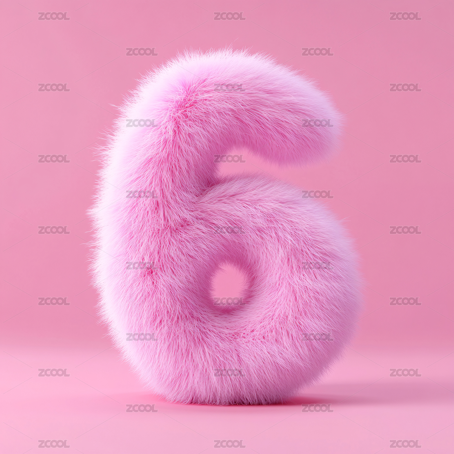 数字6粉色毛绒艺术风格