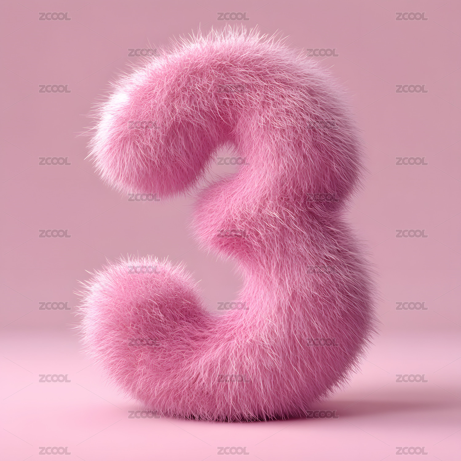 数字3粉色毛绒艺术风格