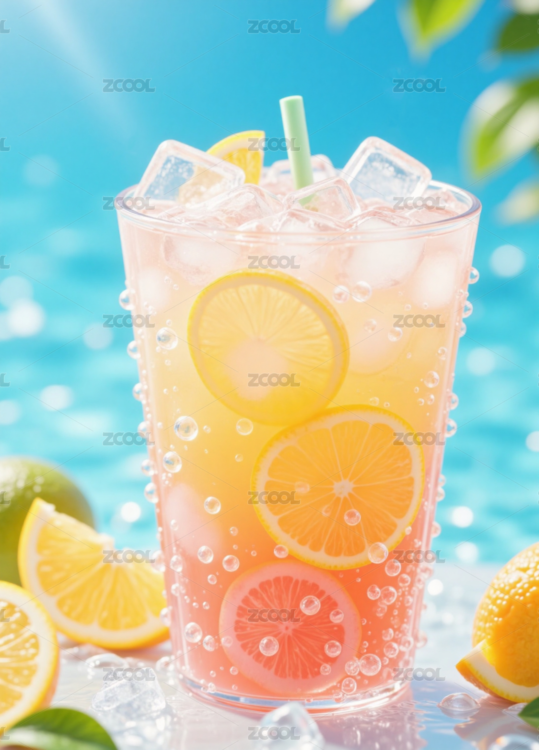 夏季水果茶饮料食品健康夏至节气清凉插画