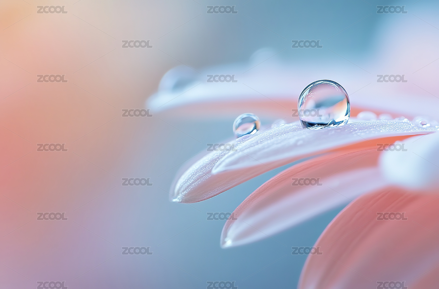 明亮的背景,透明水滴在光滑的彩色表面上,