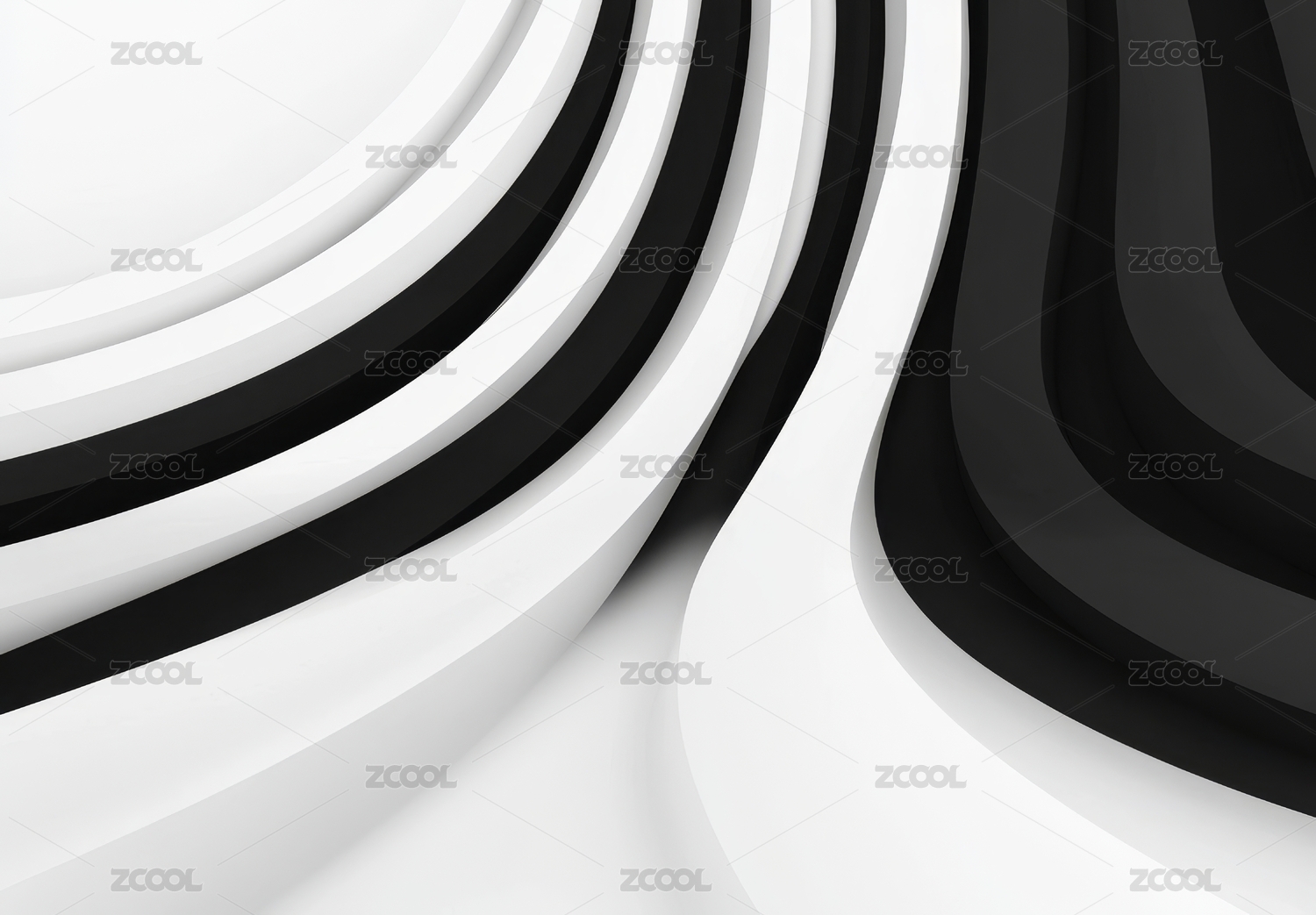 白底黑色螺旋波纹特写抽象图形3D插画立体