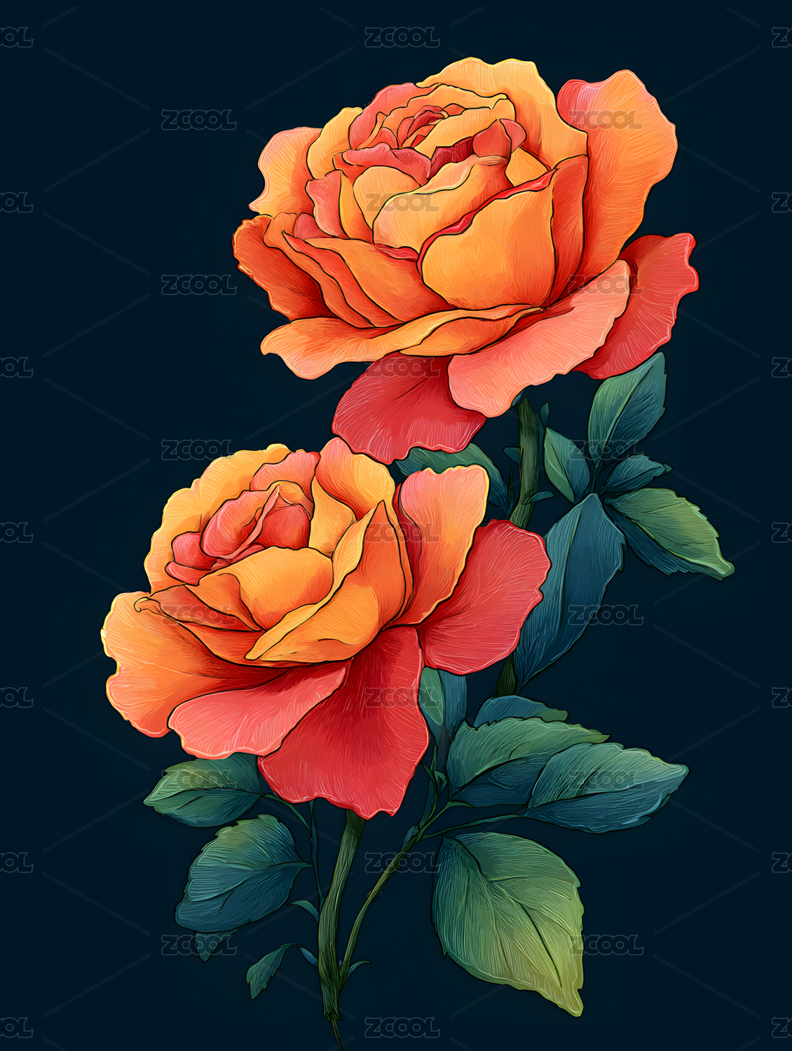 情人节节日唯美小清新玫瑰花鲜花花朵插画