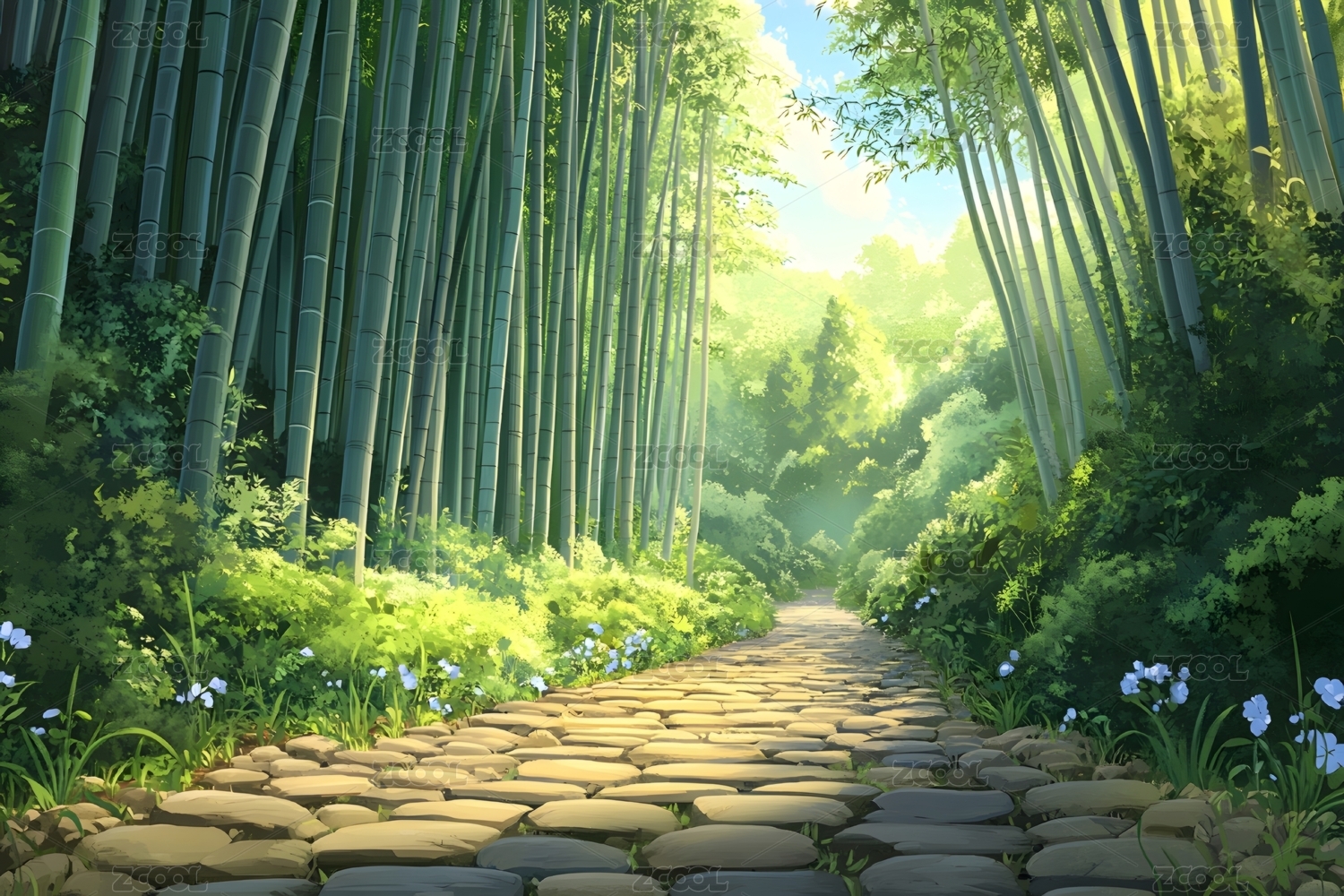 竹林,树木,阳光,自然,景色,植物,森林,远山,道路,户外