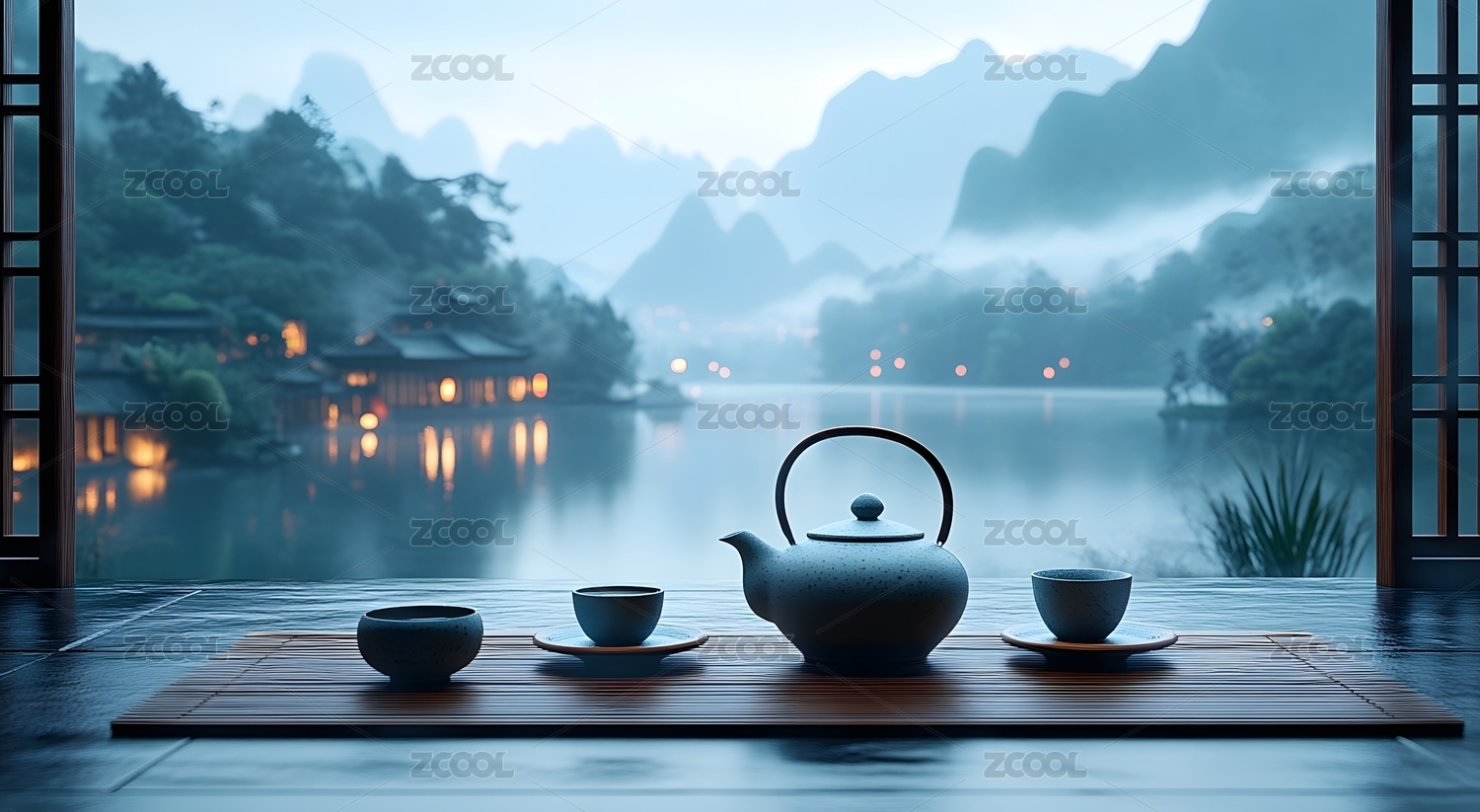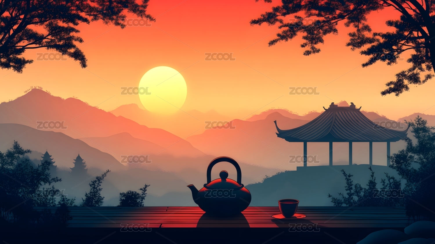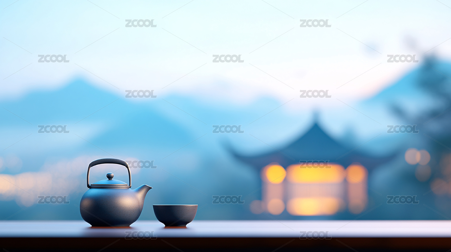 中国风, 月亮,意境, 宁静,茶壶, 茶, 山, 夜晚, 夜景, 灯笼