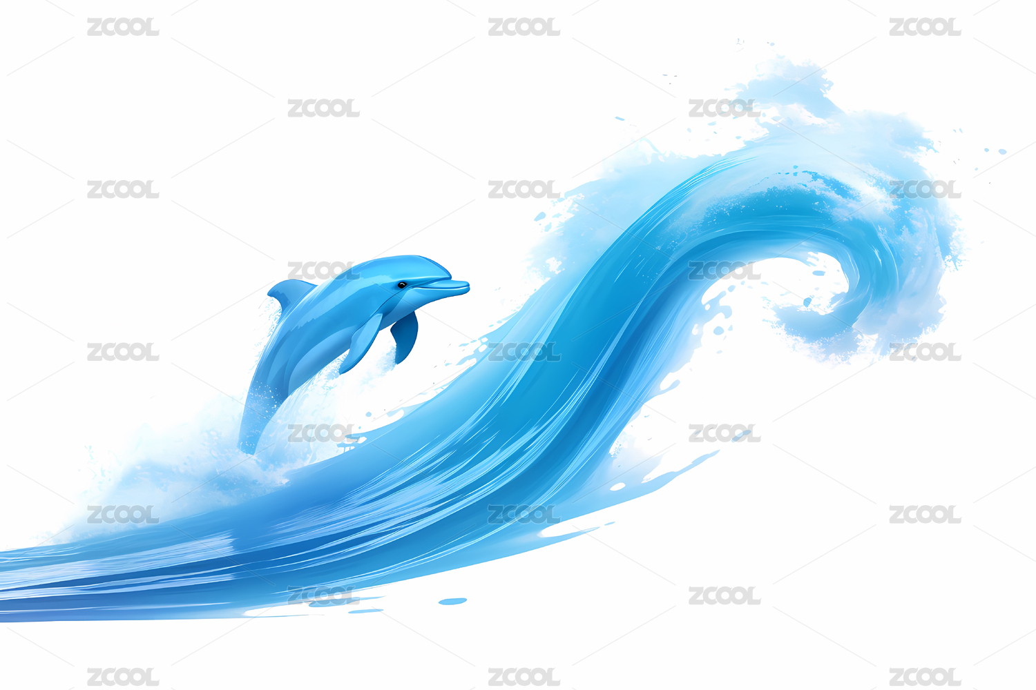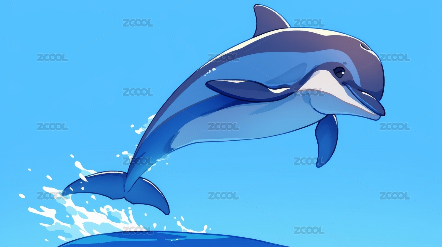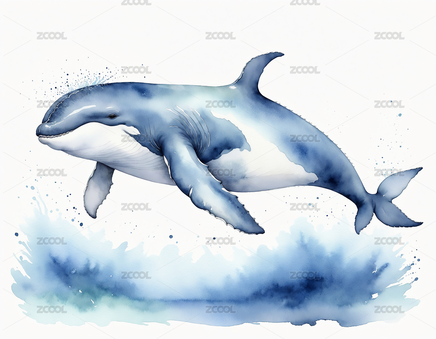 治愈系唯美插画一条蓝色的鲸鱼在遨游
