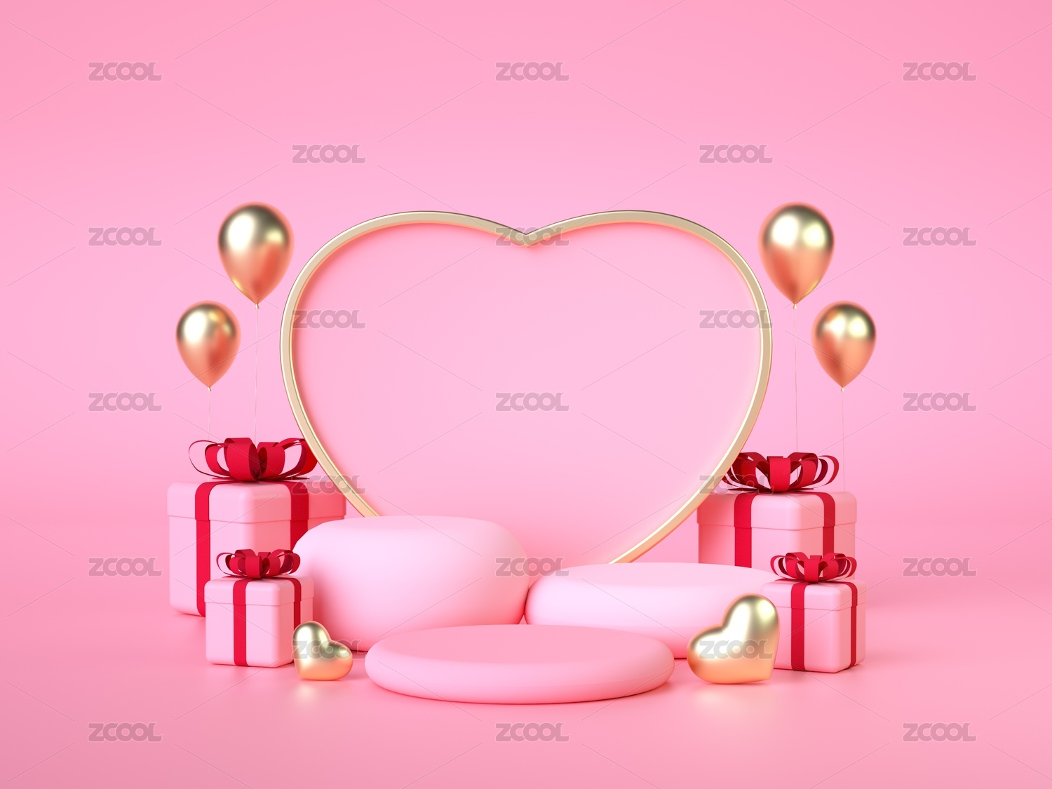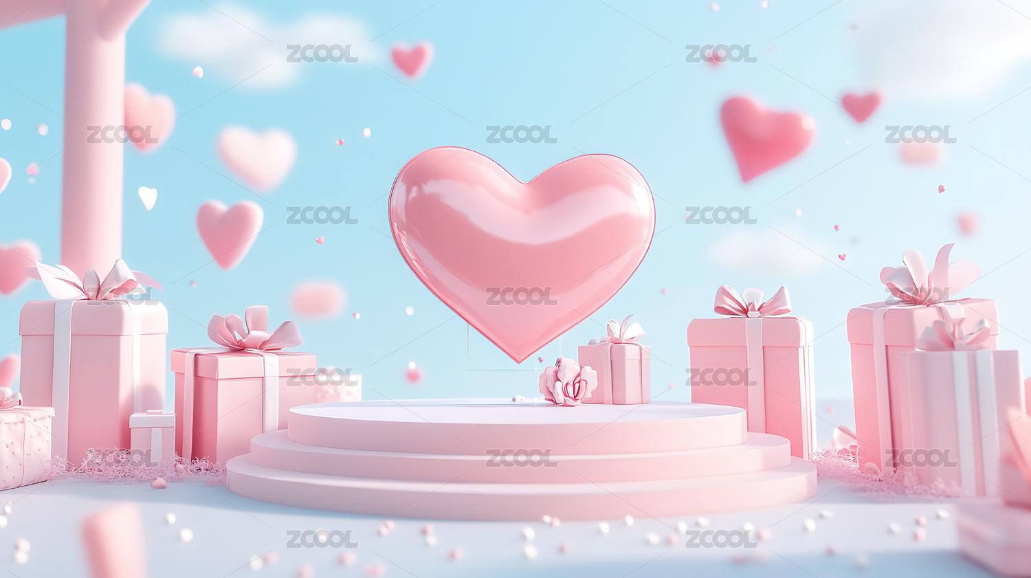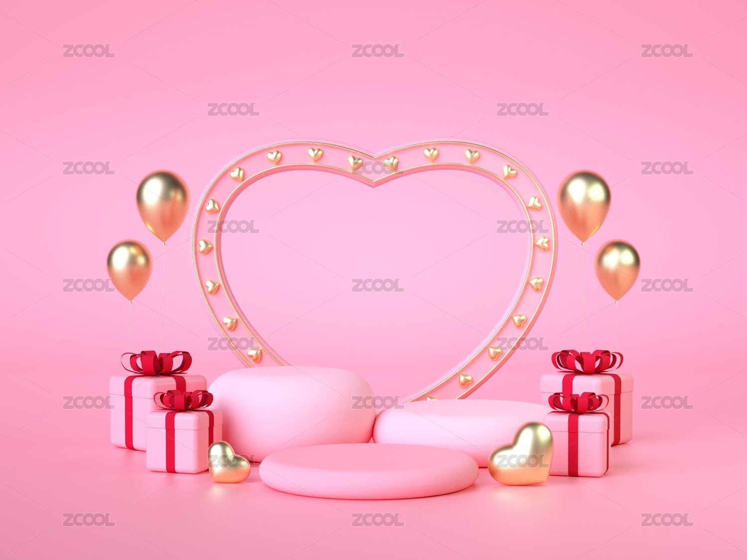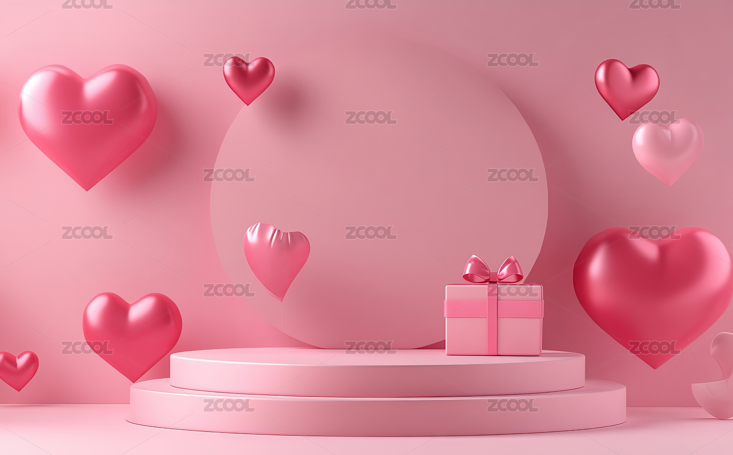 七夕情人节带气球的礼物盒展台爱情主题背景
