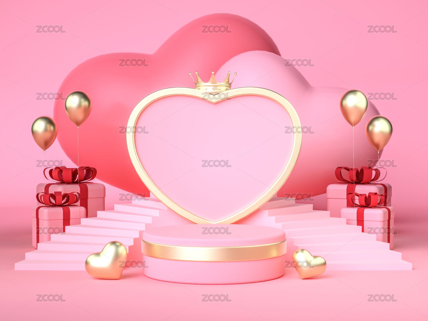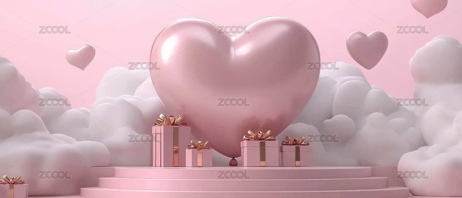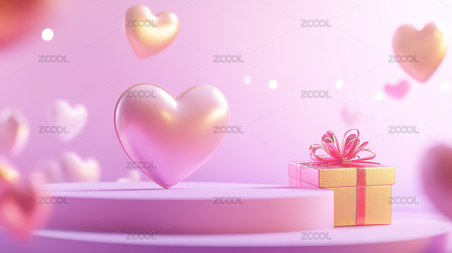 七夕情人节带气球的礼物盒展台爱情主题背景