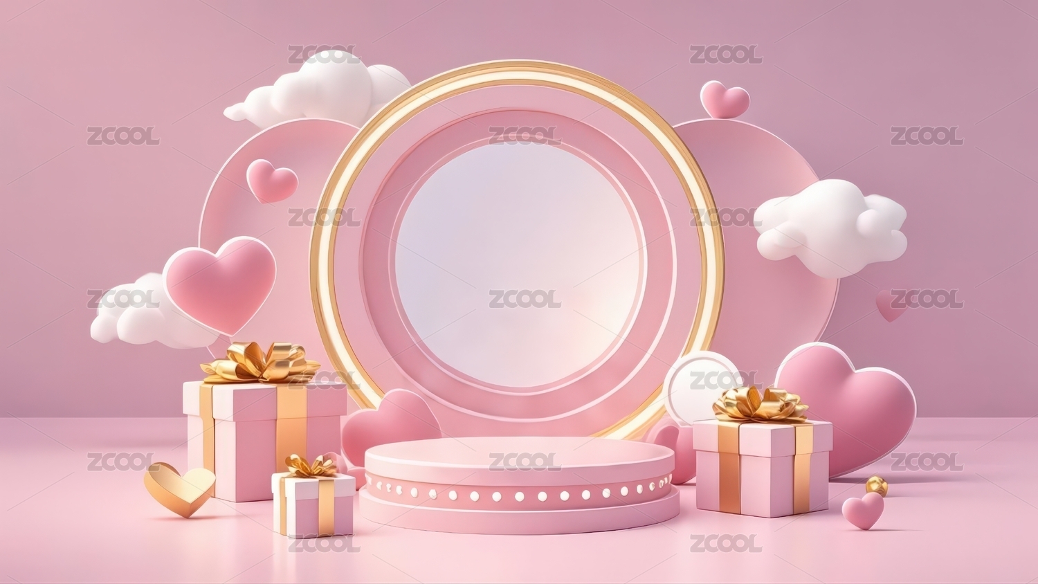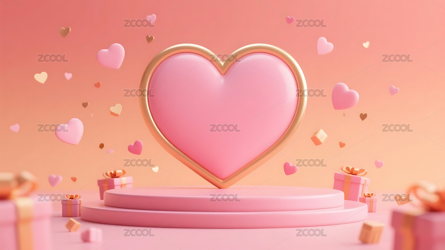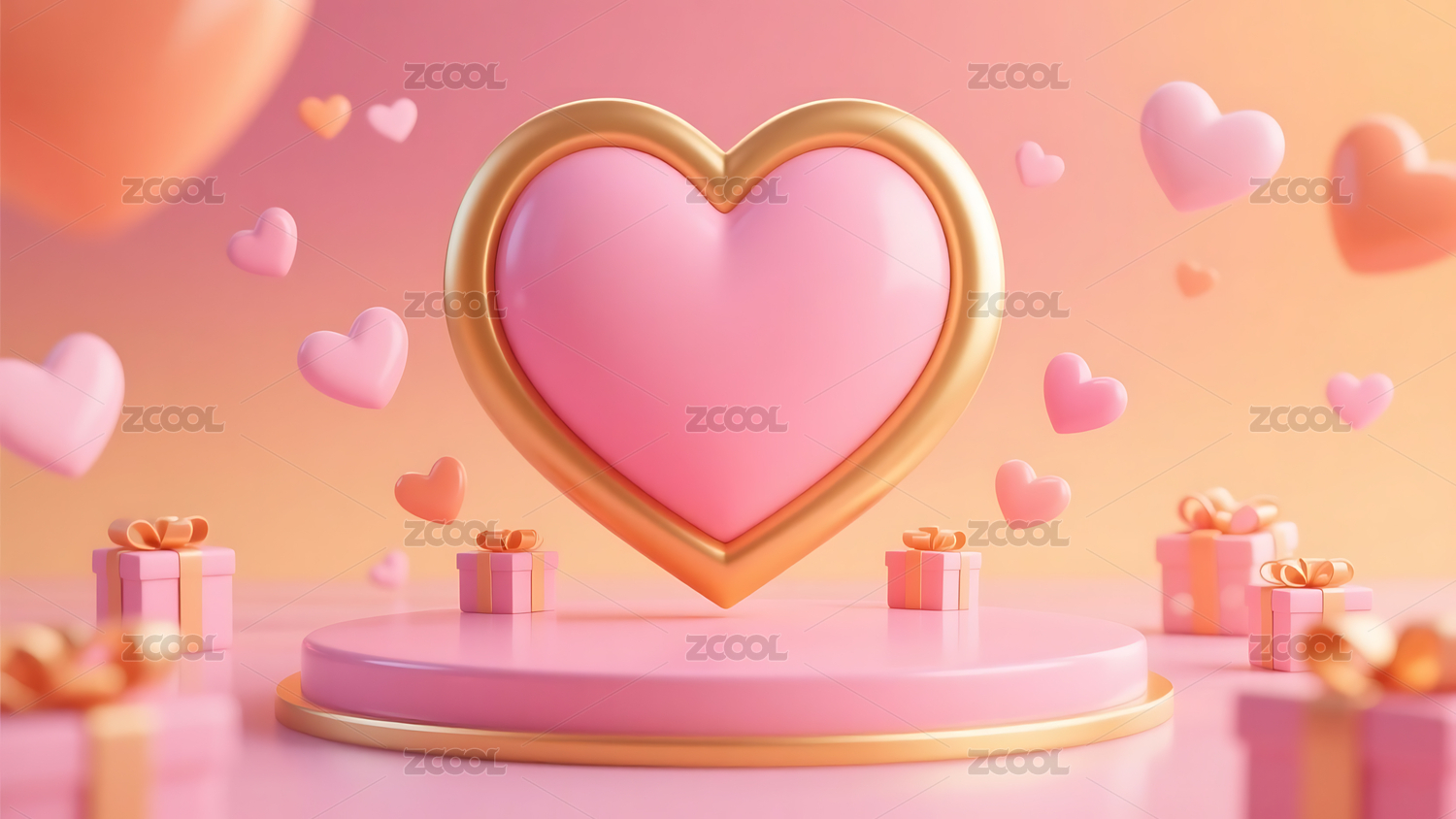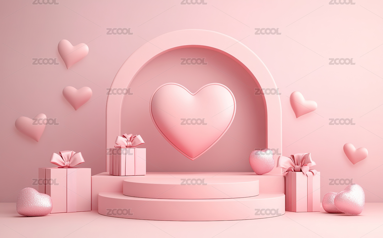 七夕情人节带气球的礼物盒展台爱情主题背景