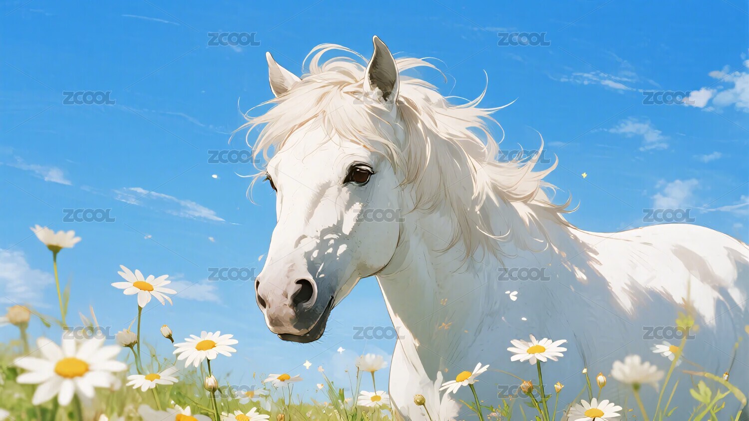 白马,骏马,奔跑,花丛,花海,花瓣,蝴蝶,阳光,草地,鬃毛