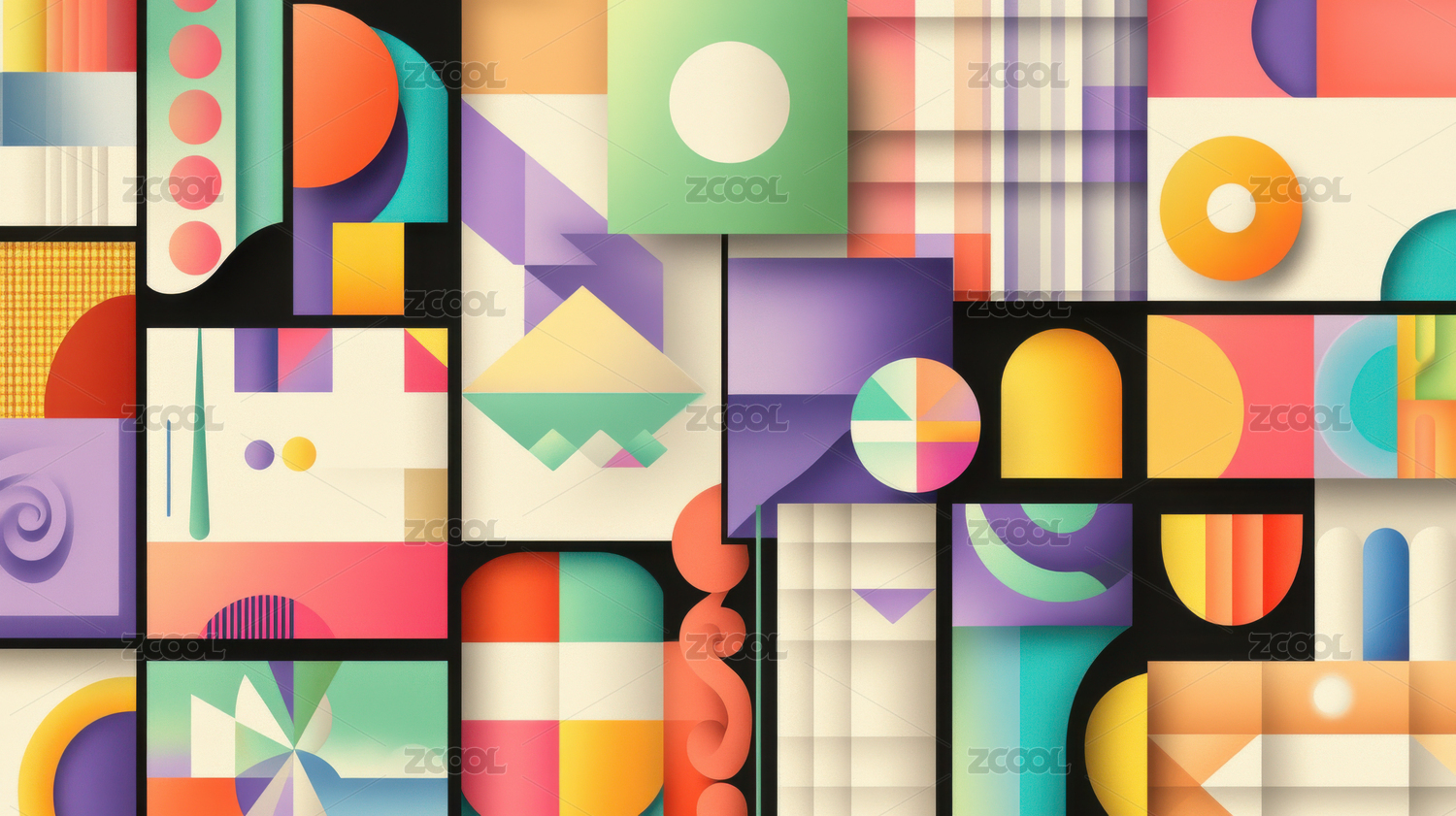 抽象几何色块扁平孟菲斯艺术背景壁纸