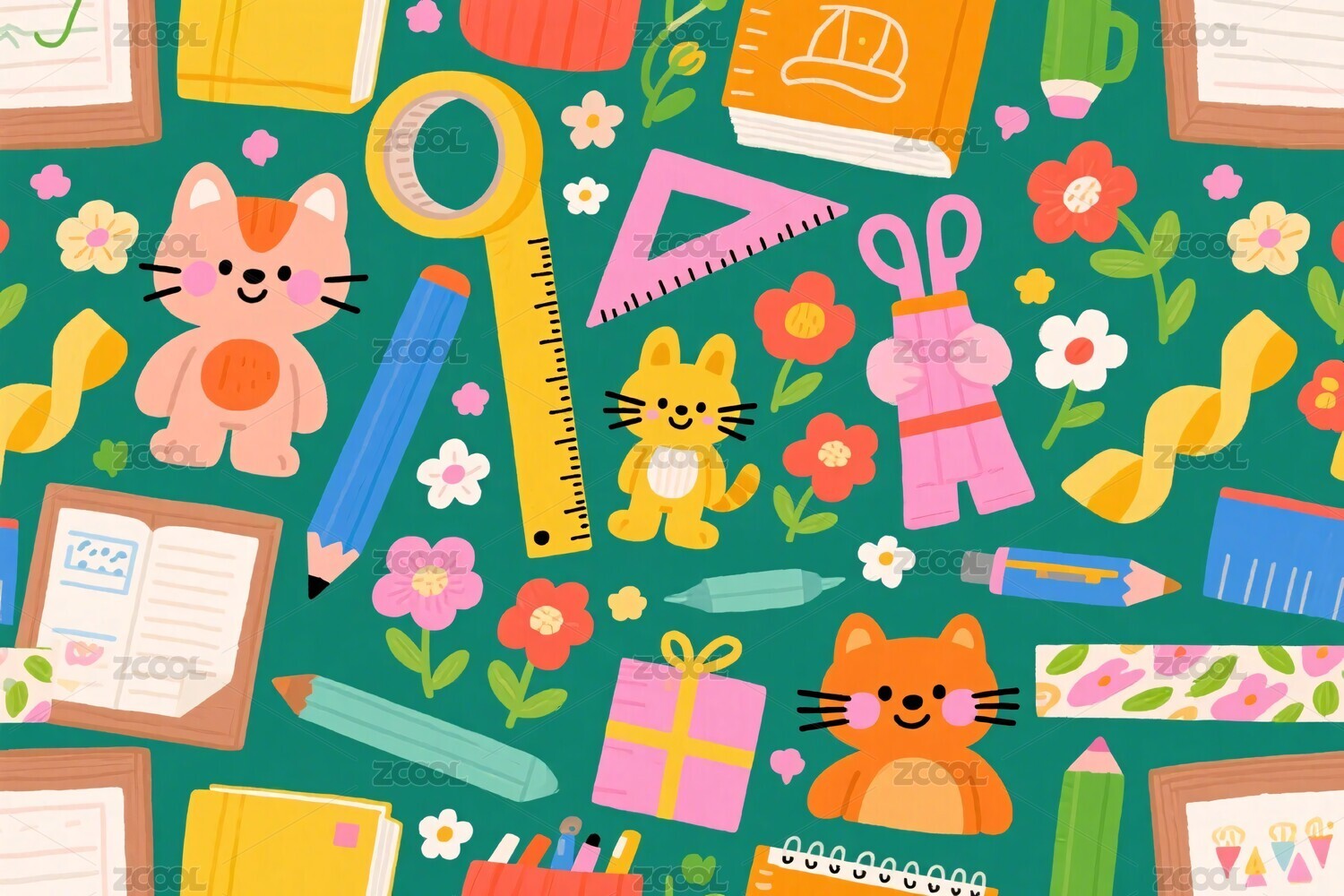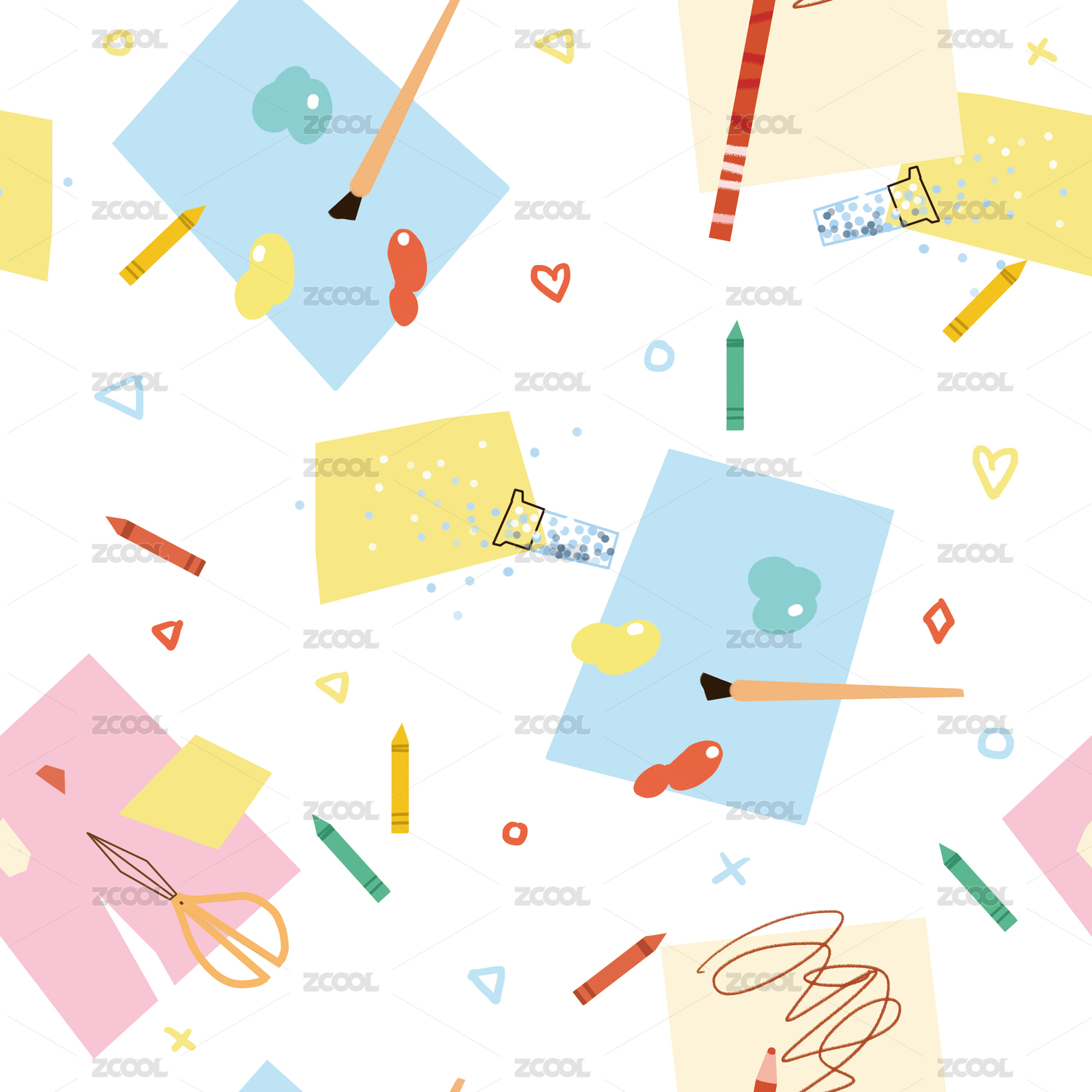 白色背景学生学习文具矢量插画无缝平铺壁纸