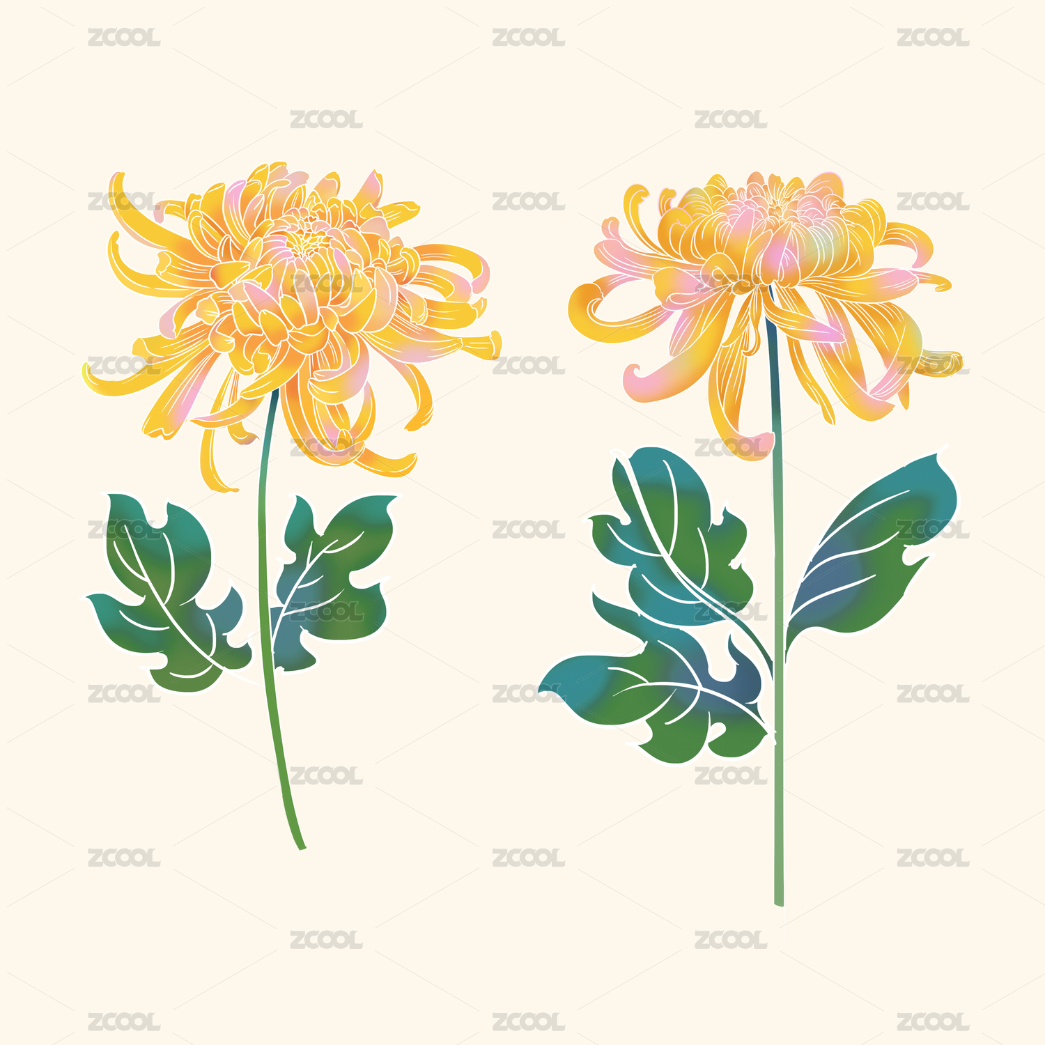 手绘水彩菊花金丝皇菊花卉中药材插画