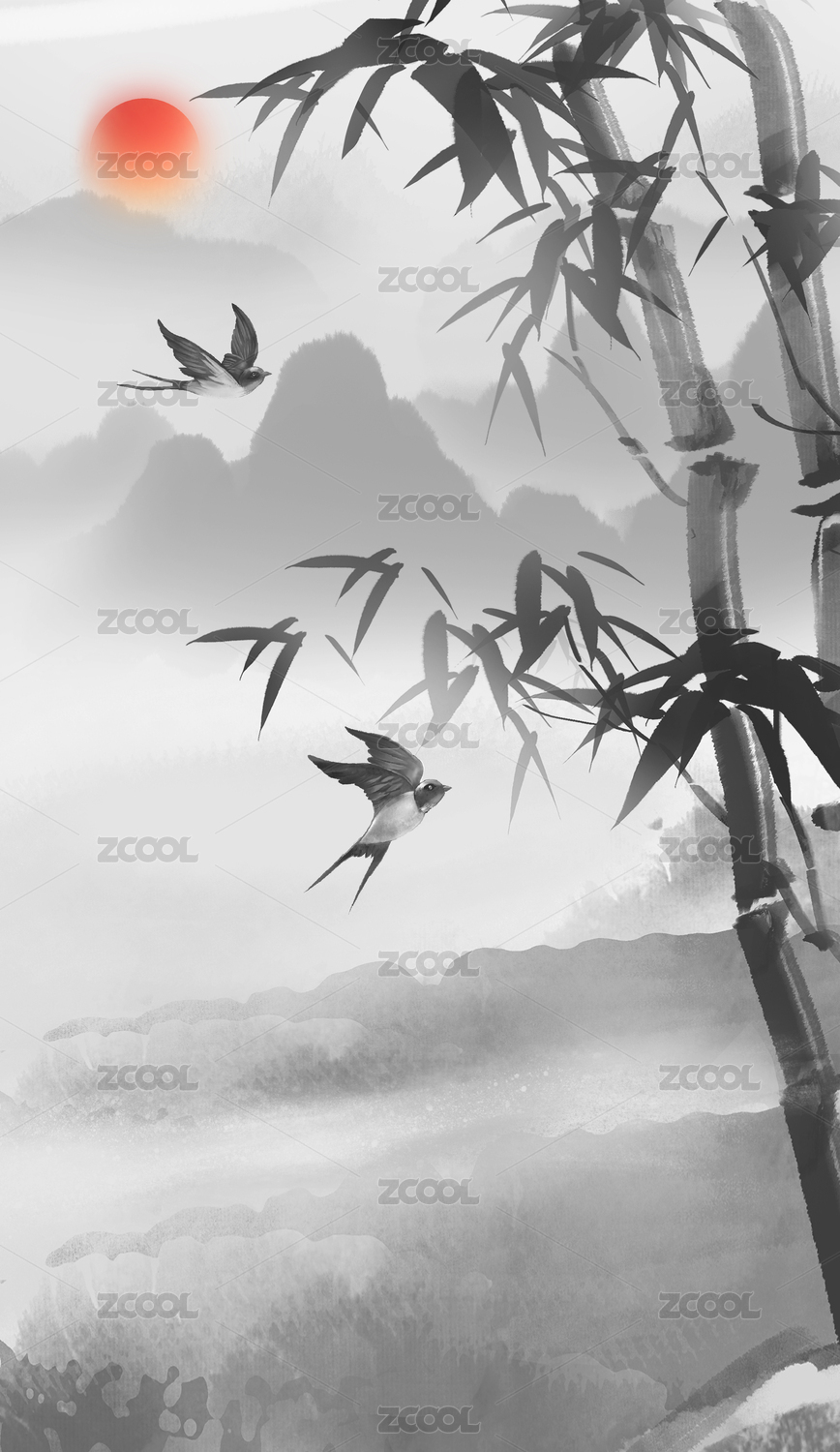 水墨,壁纸,插画,海报,中国风,古风,国画,风景,写意,商务