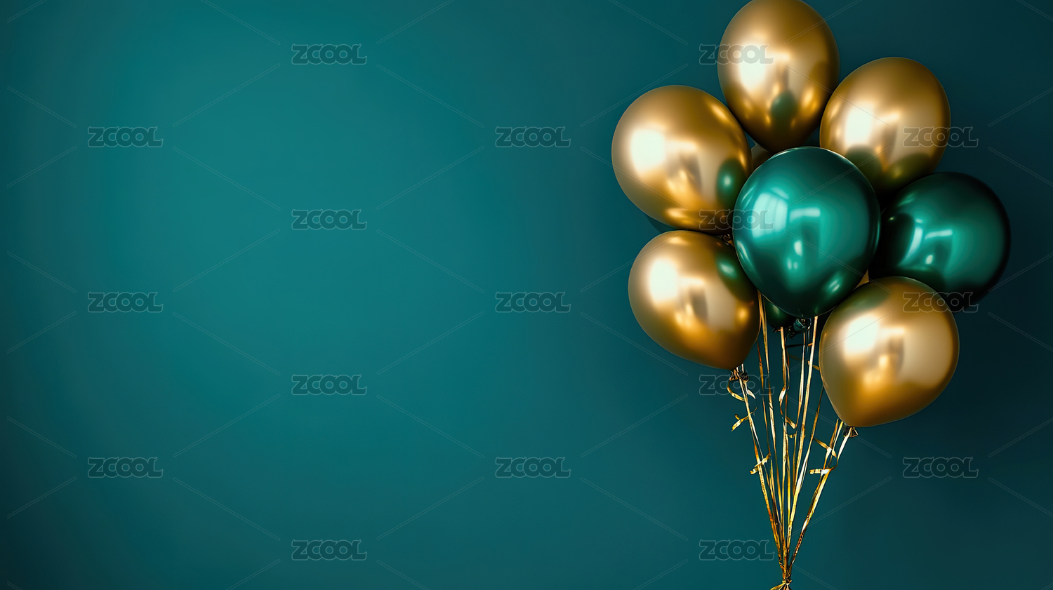 动态,视觉,节日,气球,庆祝,绿色背景,金色,白色,闪光,派对
