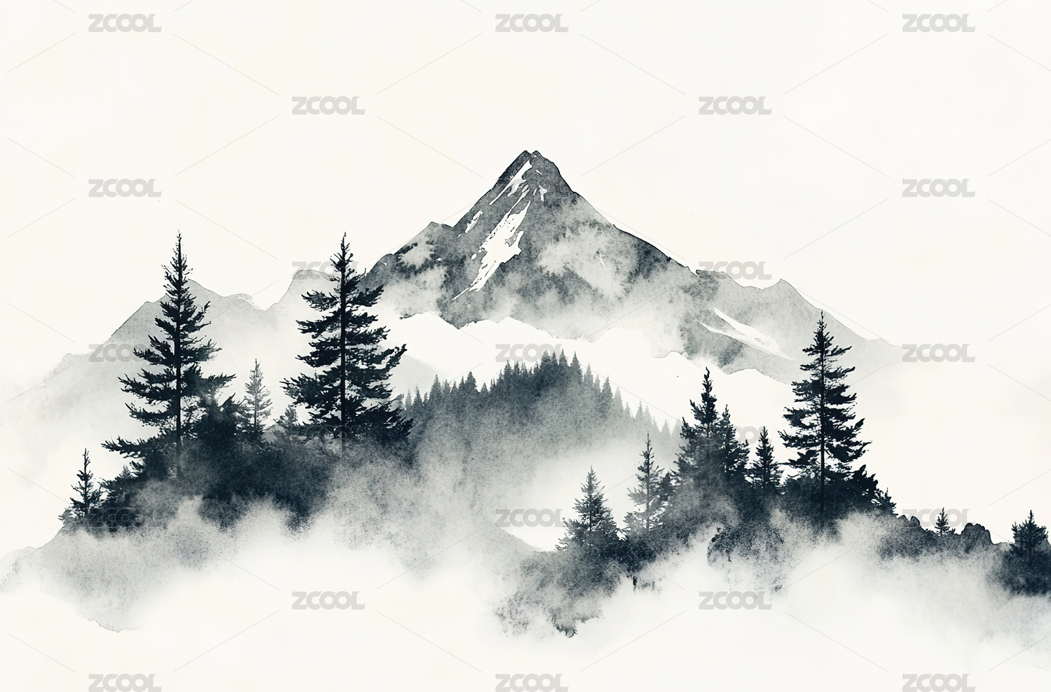 自然, 艺术, 背景,水墨画, 传统, 中国风, 简约, 山峰, 黑白, 手绘